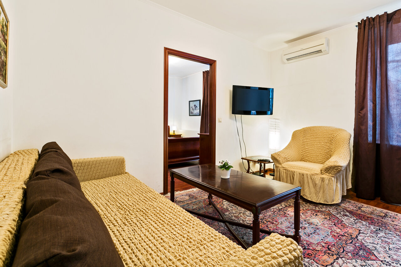Двухуровневые номера с зоной отдыха на первом этаже и уютной спальней на втором. Интерьер выполнен в классическом стиле и светлых тонах, что создает расслабляющую атмосферу.