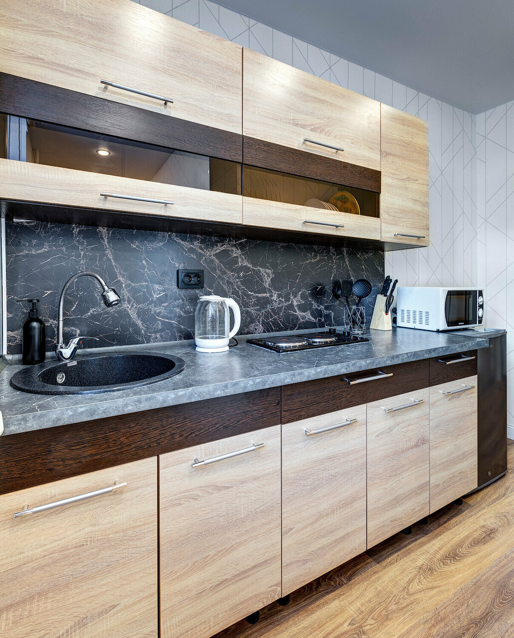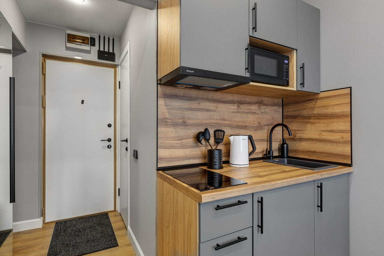 Апартаменты имеют площадь 23 квадрата, очень комфортные спальные места, вся мебель выполнена из чистого дерева, есть высокоскоростной интернет Wi FiКухонная зона, душевые системы, сплит-системы позволят Вам почувствовать себя у нас как дома!!!