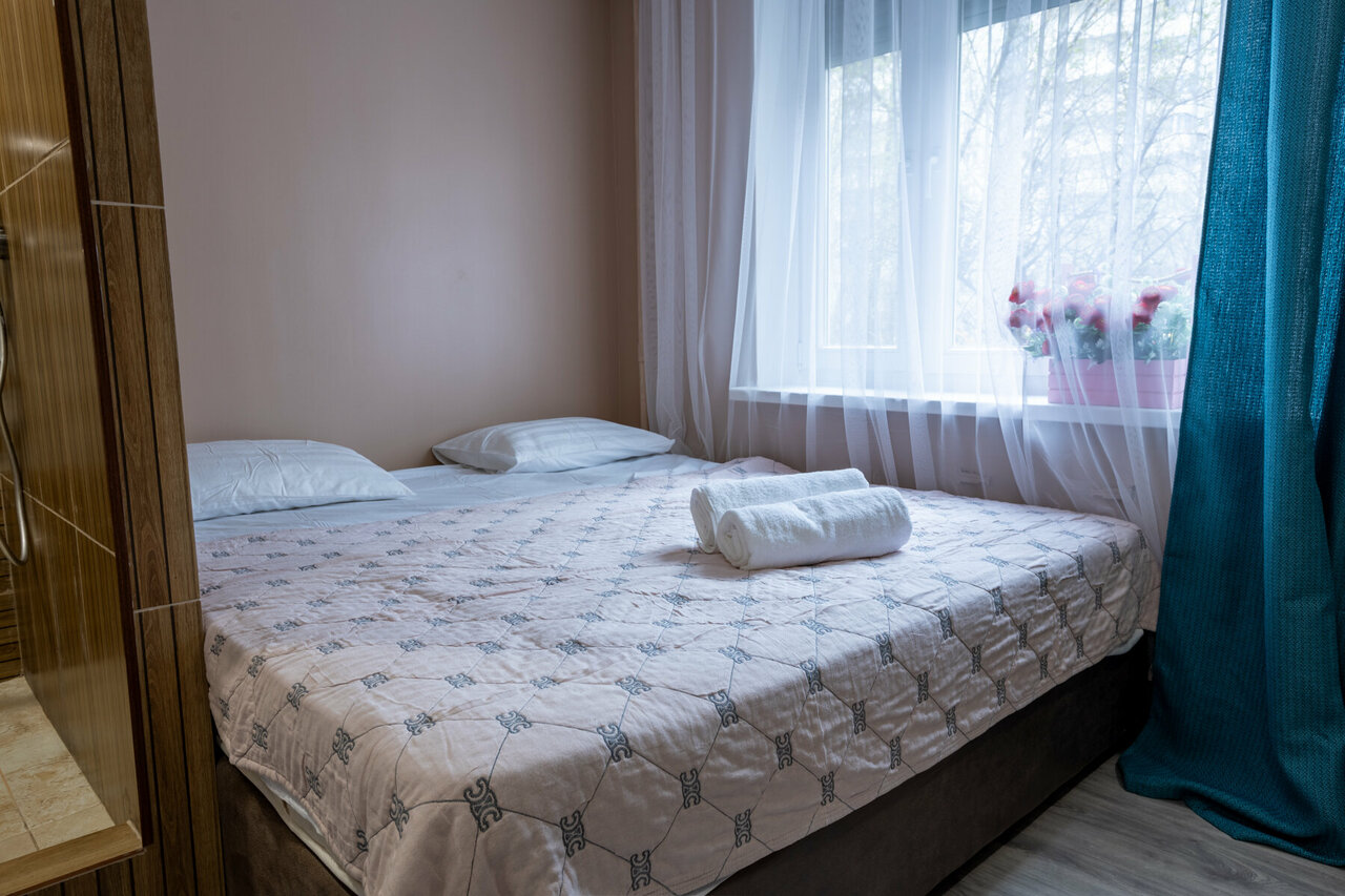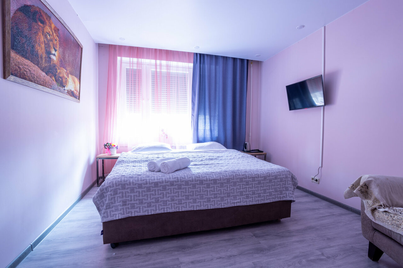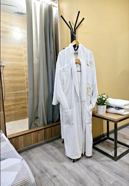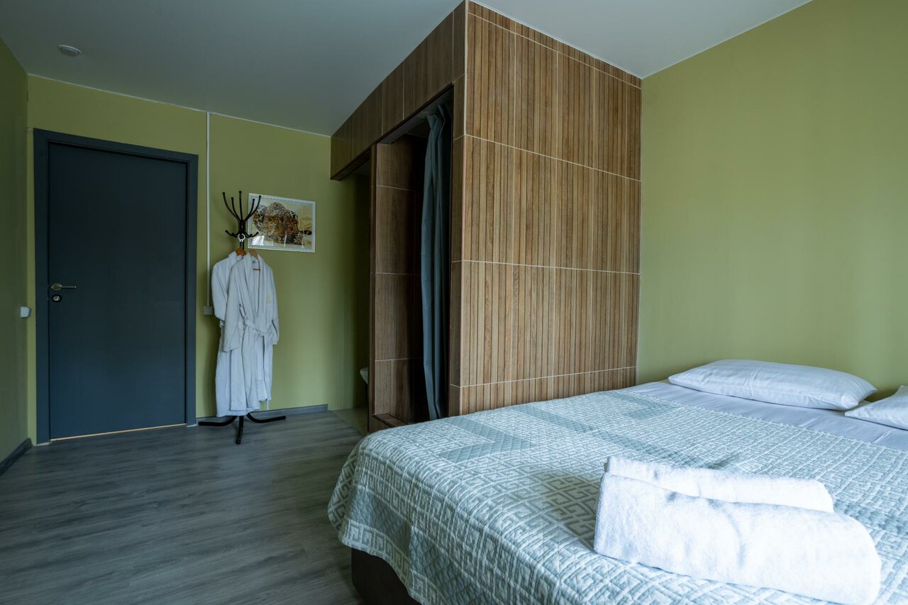 Услуги: — Номера от 3500 до 5500 ₽/ночь, включая проживание с животными и почасовую аренду. — Удобства: кондиционер, Wi-Fi, телевизор, холодильник, чай/кофе, фен, халаты, тапочки, стиральная машина, утюг. — Дополнительно: детская площадка, круглосуточная стойка регистрации, уборка.