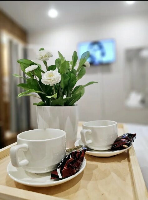 - Хорошая скорость интернета.; Быстрое заселение.; Бесплатный чай и кофе.; Наличие необходимой техники (чайник, холодильник, телевизор).; Удобное расположение (рядом парковка).