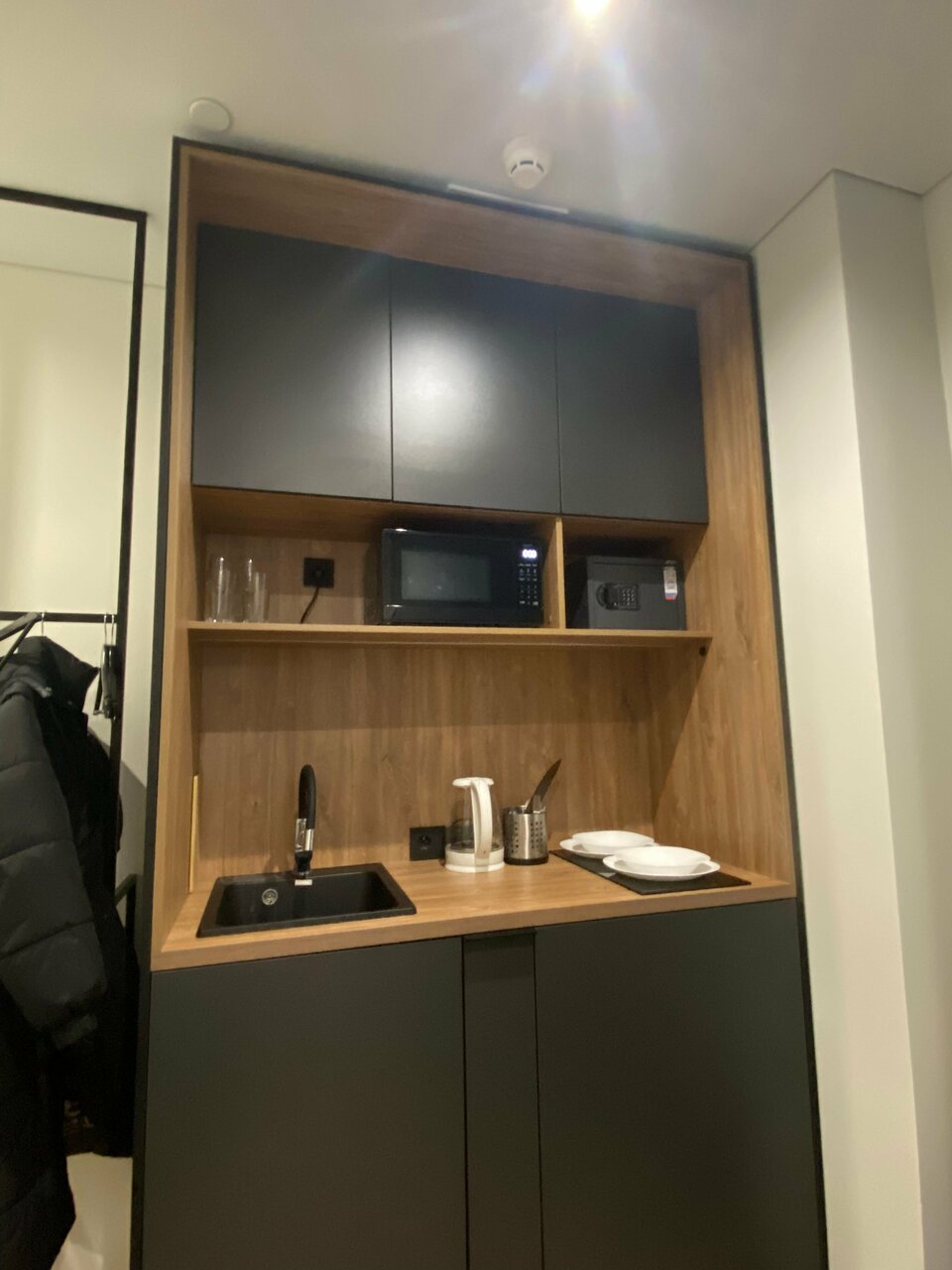 - Наличие всех необходимых предметов (зубная щётка, фен, холодильник, микроволновка, чайник, телевизор, тапочки, формочки для льда).
