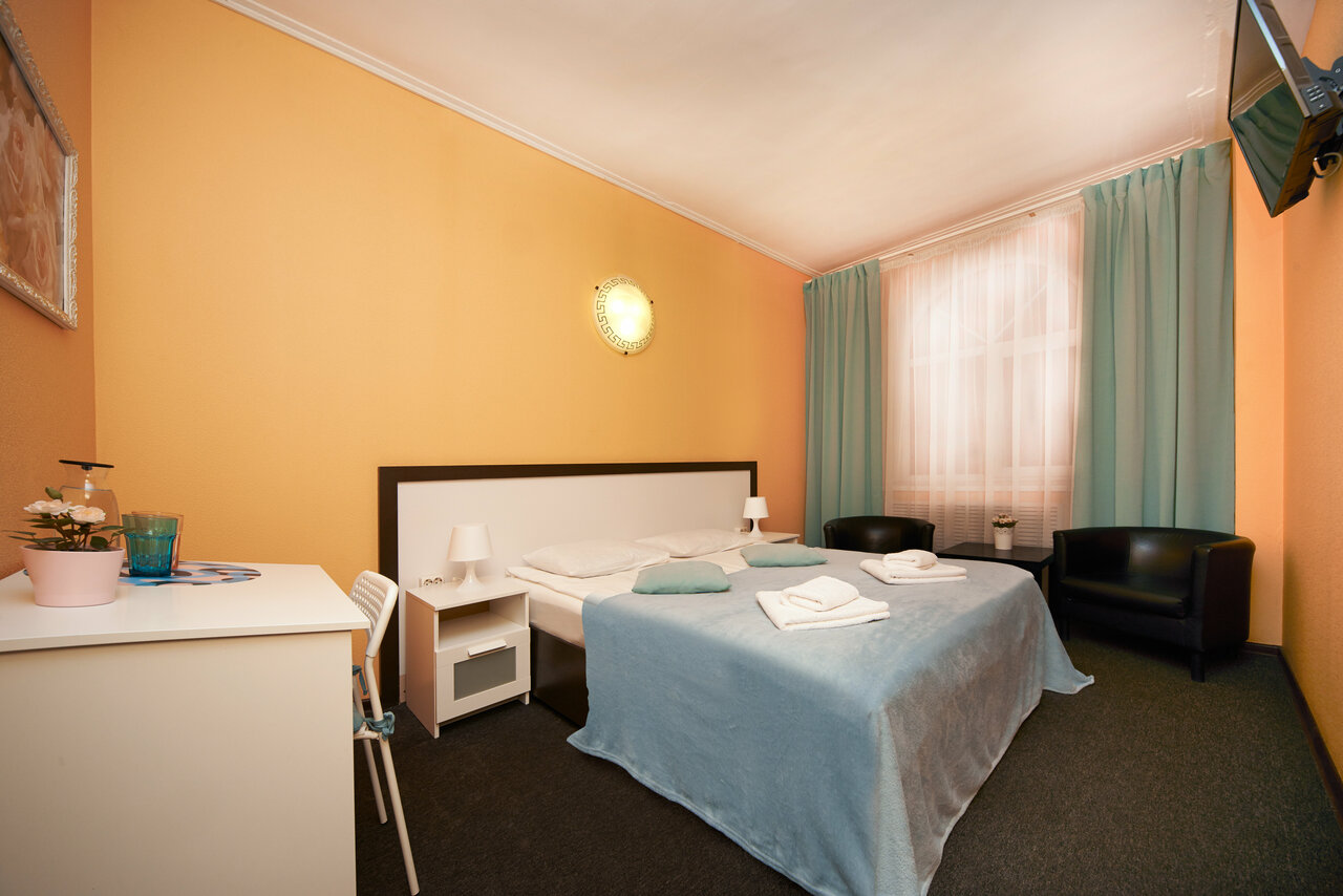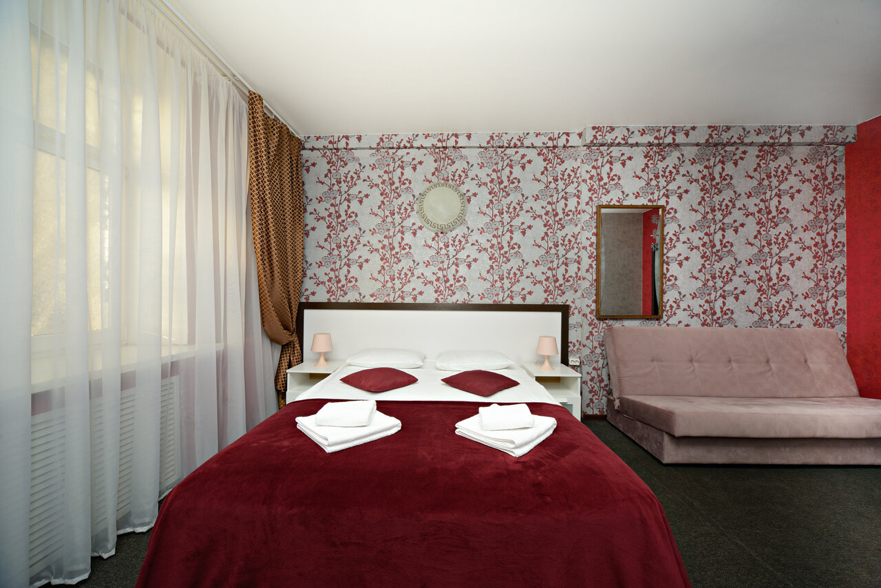 Были в данном отеле 26 октября. Все бы ничего, но вот очень старый ремонт и тараканы в номере это жесть! Постельное бельё очень застиранное и подушки с матрасом давно уже поменять нужно! Из плюсов только цена и бесплатный чай с кофе! Больше не приедем в данный отель!