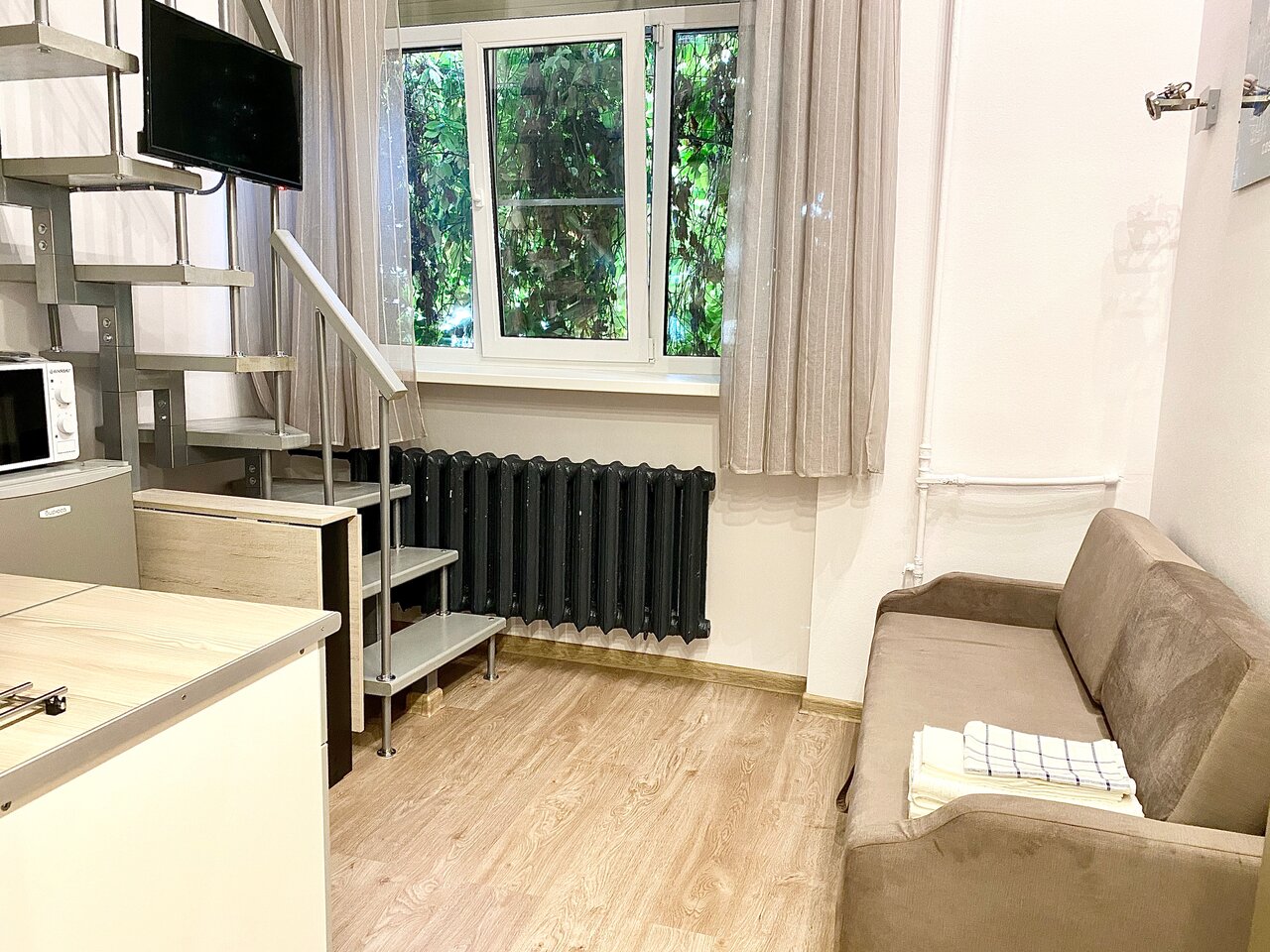 Апартаменты рядом с ВДНХРазделены на 2 уровня: жилая зона и удобства расположены на первом уровне, а спальная зона на втором.Прекрасно подходит для размещения 3х гостей: двуспальная кровать 160/200 см. и одноместный диван 65/190 см.
