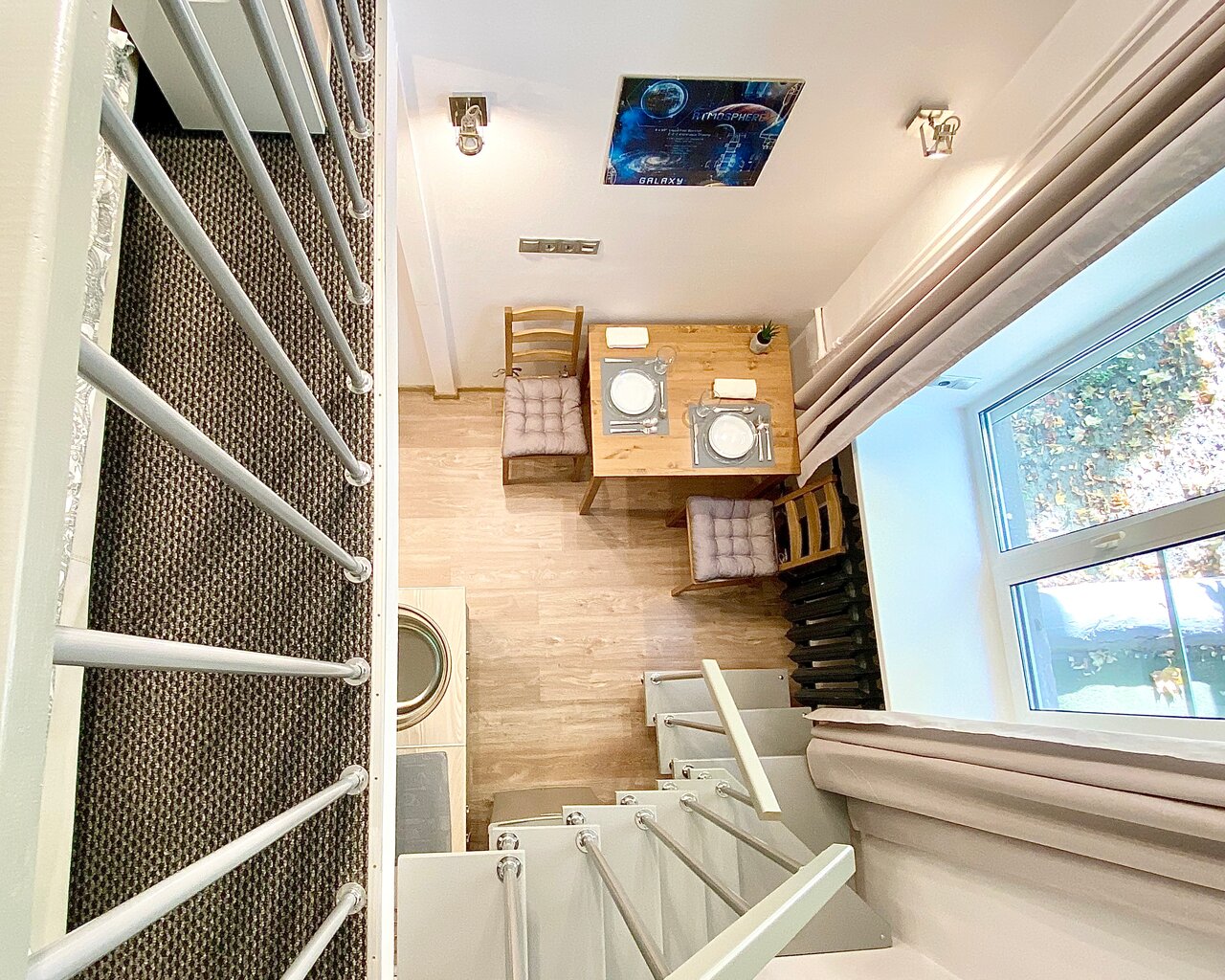 - Необычное расположение кровати (на втором ярусе, что может не всем подойти).