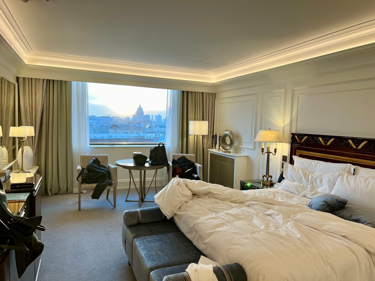 Отель находится в 3 минутах от красной площади, идеален если решили провести выходные в центре города, рядом все нужные магазины для шопинга и Красная площадь. Персонал очень любезен и полезен для решения вопросов, обслуживание на завтраках супер, чистота и уют на уровне европейских отелей. Есть конечно вопросы по еде в номера, т.к. в номере тележку с едой попросту очень тяжело поставить, номера не большие, но уютные. Отель роскошный, кругом все блестит и сияет!