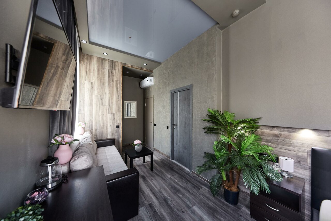 Уютные апартаменты с 1 спальной комнатой, кухней и совмещенным санузлом. Кухня оборудована варочной панелью, холодильником, эл. чайником, есть вся необходимая посуда. Номер расположен в 3 корпусе. Не оборудован кондиционером. Номер оснащен мини-баром