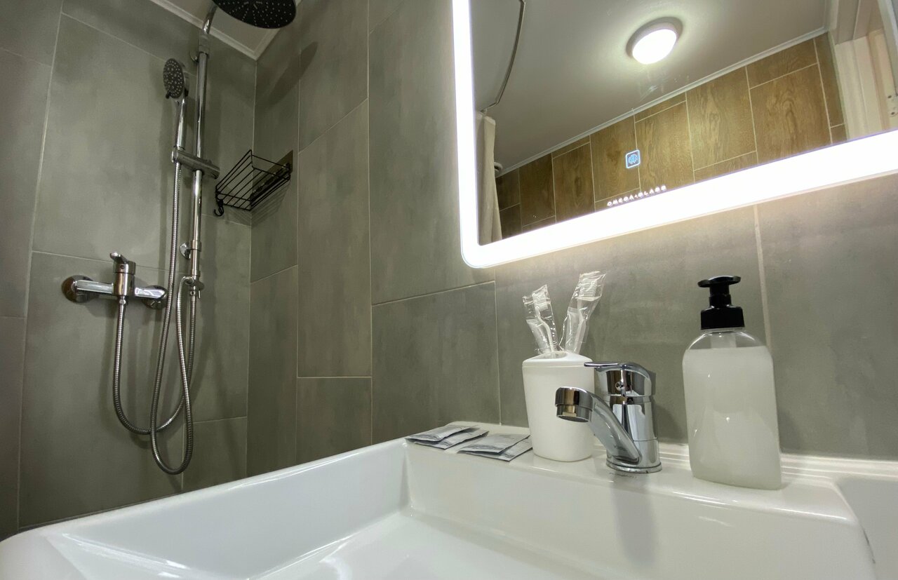 - В номере есть всё необходимое (холодильник, душ, плитка, кондиционер).