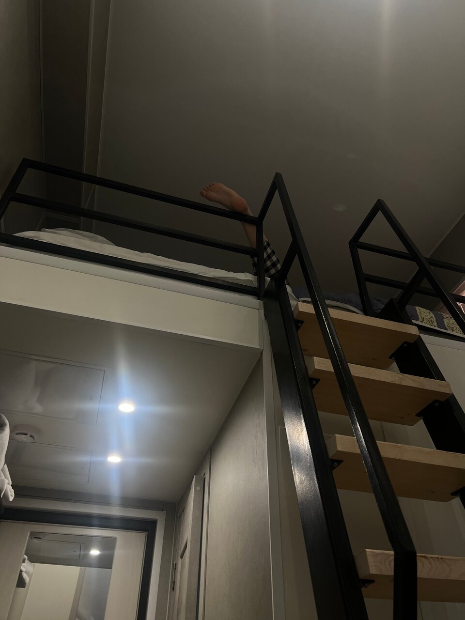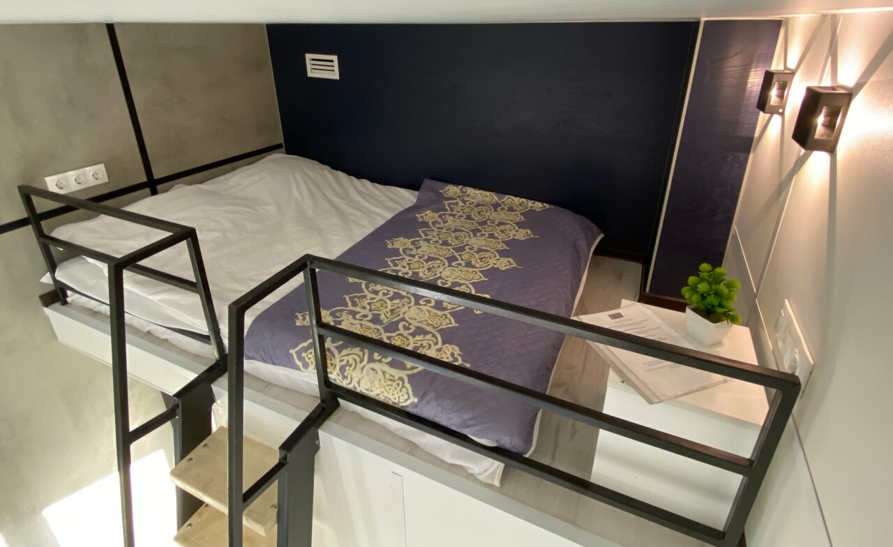 Сначала не впечатлил, так как возникли проблемы с ранним заселением, персонал медленно убирал номера и про нас забывали, но мы все же смогли заселиться и доплатили не так много, ибо из-за долгого ожидания заселение получилось не таким уж и ранним. Но в целом, отель мне понравился, номера уютные и для двух девушек вполне комфортные и не тесные. Убрали хорошо, чистое постельное, мусорки, есть чайник, посуда, плита и холодильник, есть фен и горячая вода (идет быстро). Еще есть телевизор, но вот он не работал. Лестница к кровати не смутила, показалась вполне удобной, но, думаю, для людей в возрасте не супер решение. Сама кровать понравилась, очень мягкая, выспалась на ней не смотря на короткий период сна и ободрилась, пока спускалась. Бар никак не помешал, так как изначально понимала, на что иду, да и шум никак не мешает моему сну и засыпанию. Вот подъем на 4-й (по факту 6-й) этаж действительно дается тяжеловато, а так, в целом, все хорошо.