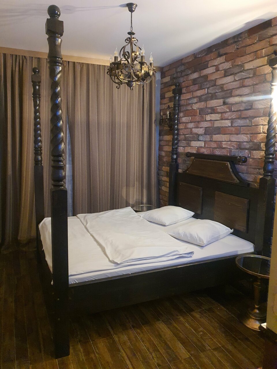 Ставлю две звезды за расположение и цены. А и телевизор был хороший. Это единственные плюсы, которые мы увидели. Номер не чистый, подвальное помещение, запах канализации во всем отеле, было только два полотенца и то старые потрепанные в пятнах, камин электрический сломан, паутина по углам в комнате, пыльные люстры, не чистый пол. Попросили стаканы, а они покоцанные( только тарелки были норм. Окно выходит на лестницу, которая при входе. Одеяло одно небольшое на двоих, лежало на подоконнике, поэтому пришлось уточнять, где оно. Я бы не хотела сюда возвращаться