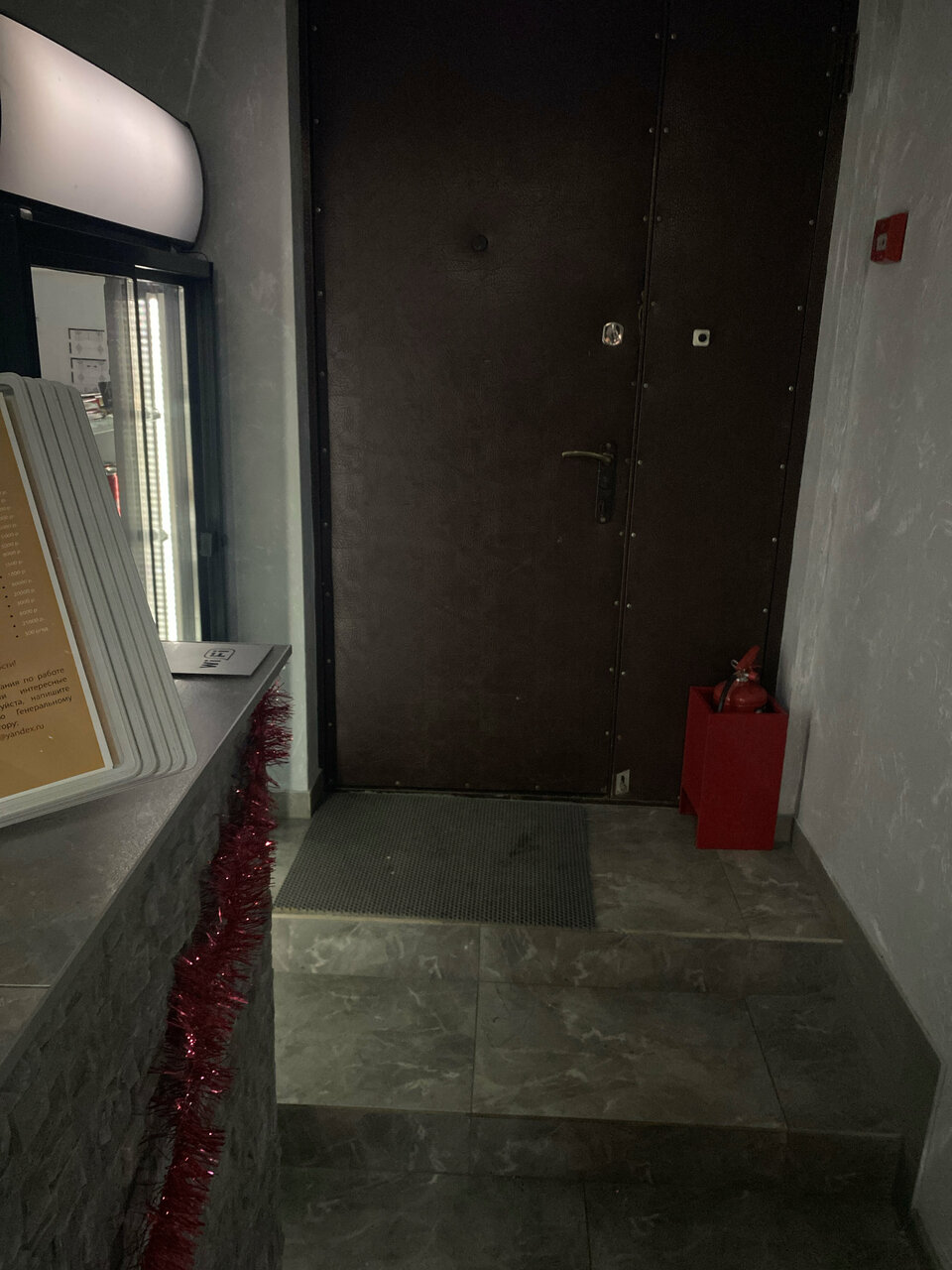 - Окно выходит на лестницу.