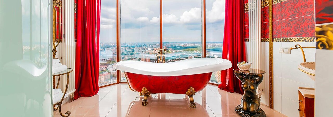 - Ванна у окна с видом на город.; Красивое здание и интерьер.; Романтичная атмосфера, подходит для фотосессий.; Бесплатная парковка.; Доброжелательный персонал.
