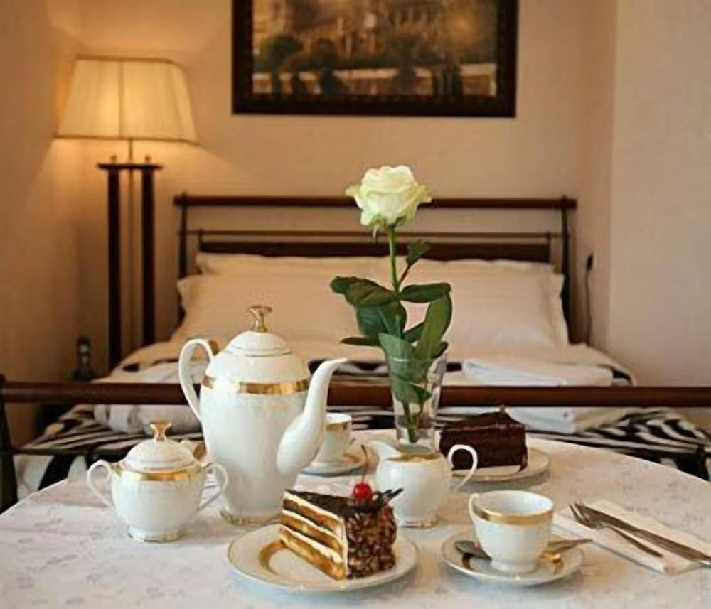 Единственный плюс — отличный вид. Всё остальное весьма убого. Вместо минибара — потрепанный пустой холодильник. Нет плотных штор, поэтому летом с трех ночи спать становится невозможно. На ресепшене не работал терминал. По заказе еды в номер оплатить можно только налом, при этом у них сложности со сдачей. Чайник неврзможно вскипятить, если он стоит на своем месте — нет доступа к розетке. Приходится отодвигать холодильник и ставить чайник на пол, иначе не хватает длины провода. Почему-то к чайнику прилагается пять пакетиков кофе и лишь один пакетик чая. Весь кофе — дешевый три в одном, что весьма странно для такой цены номера.