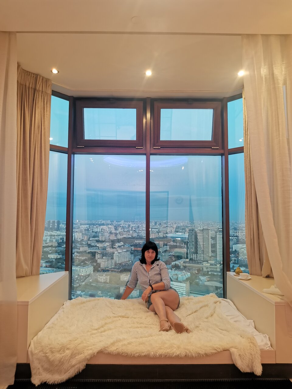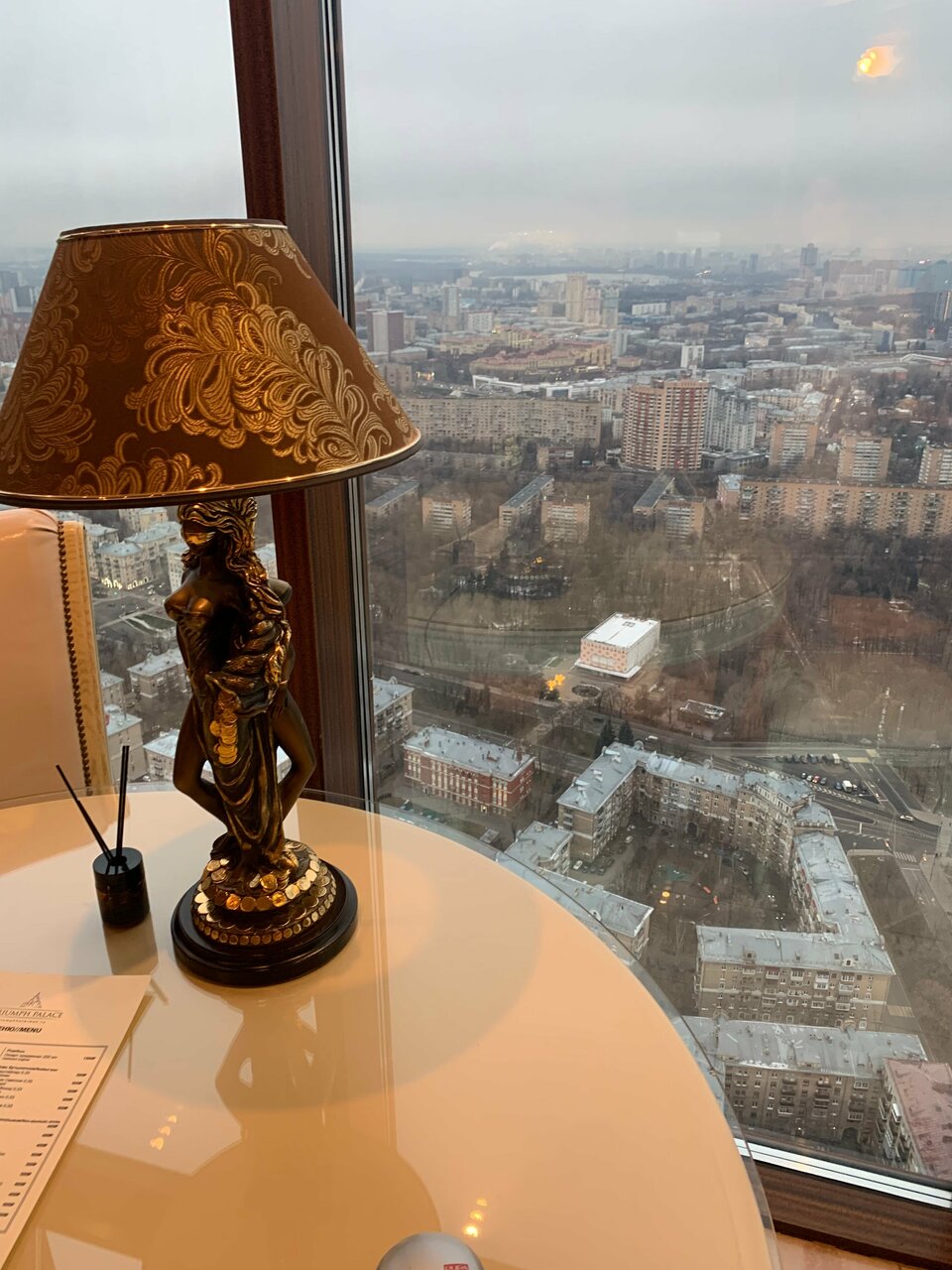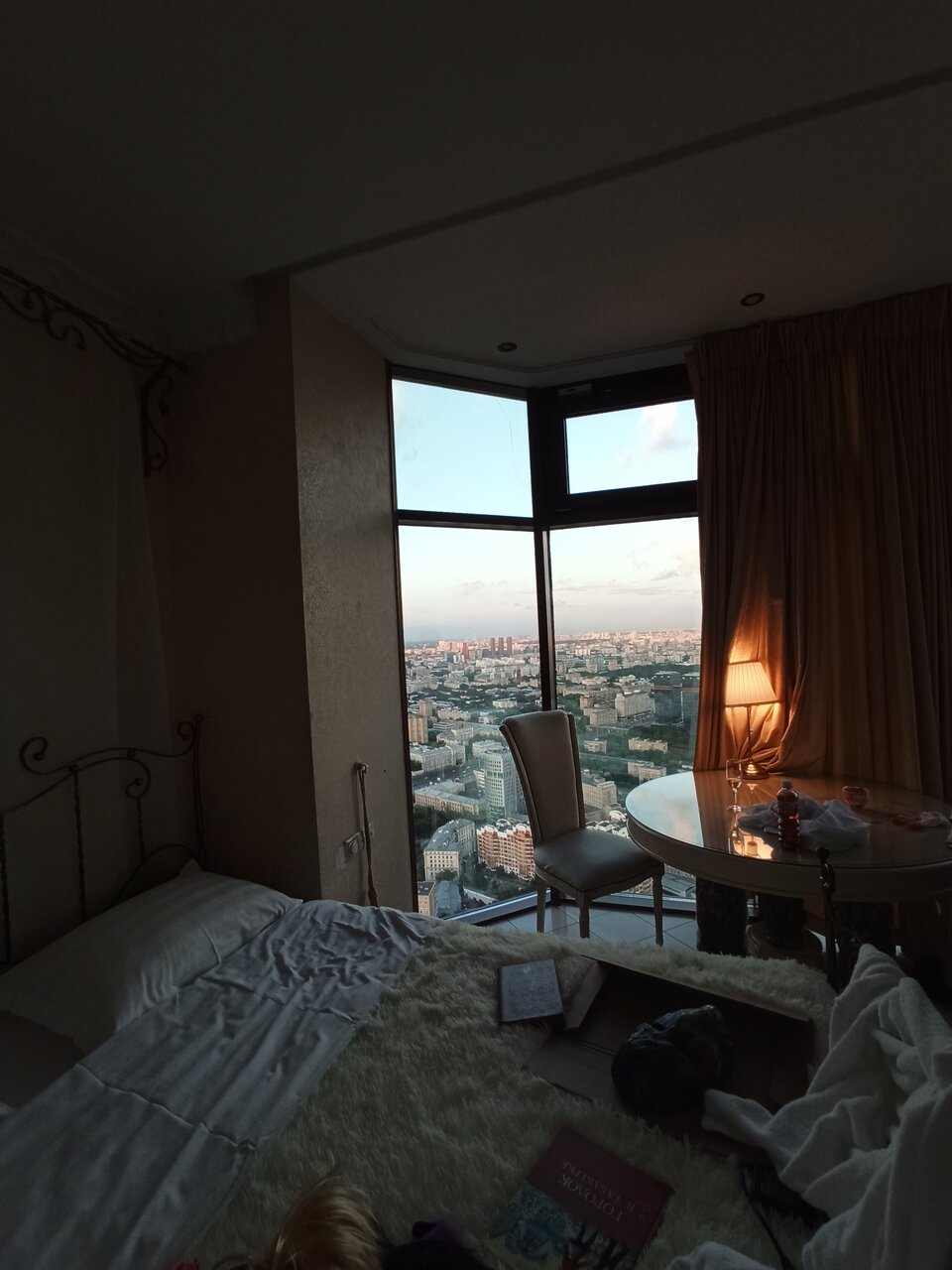 Очень круто, романтично и пафосно одновременно. Москва с высоты орлиного полёта. Очень хорошее приветливое обслуживание. Очень понравился номер ‘Барселона’.