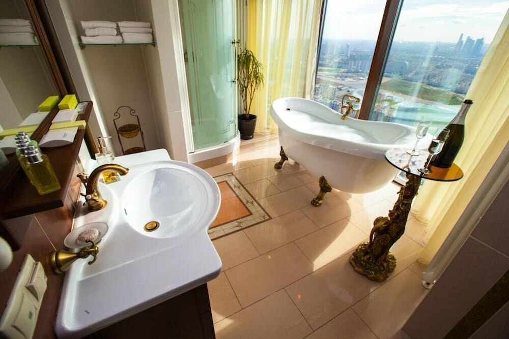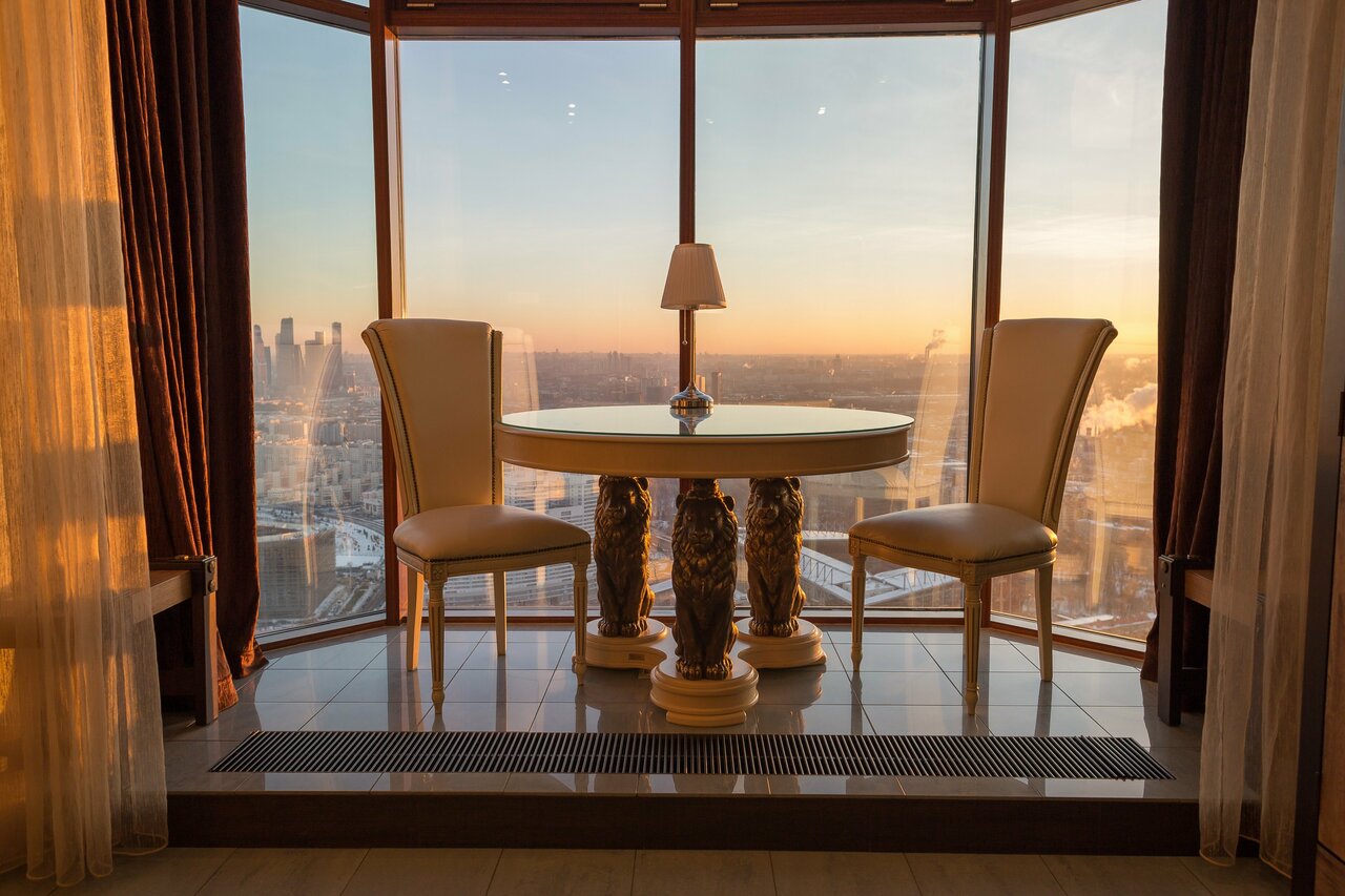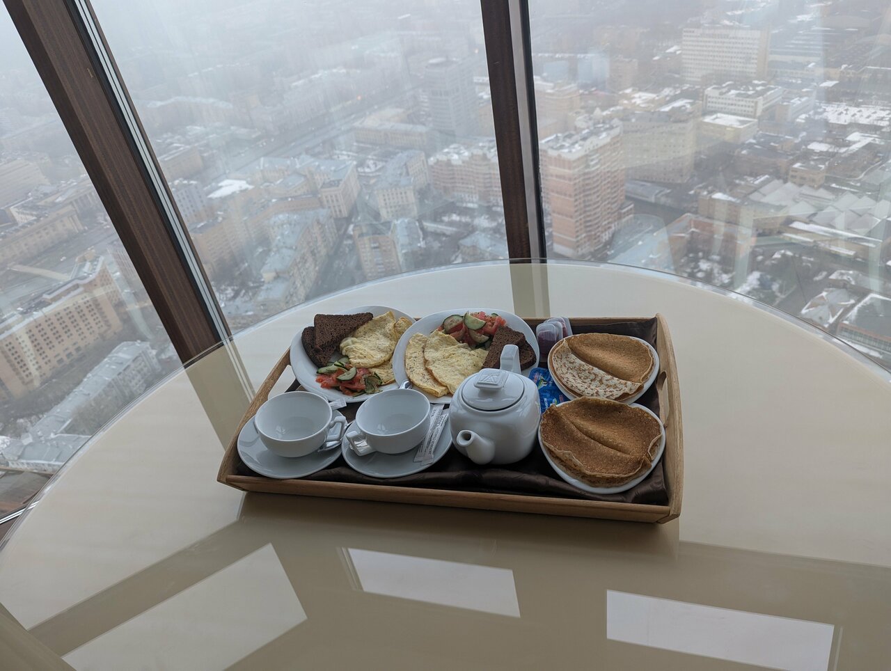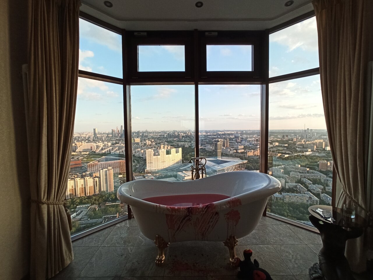 Очень круто, романтично и пафосно одновременно. Москва с высоты орлиного полёта. Очень хорошее приветливое обслуживание. Очень понравился номер ‘Барселона’.
