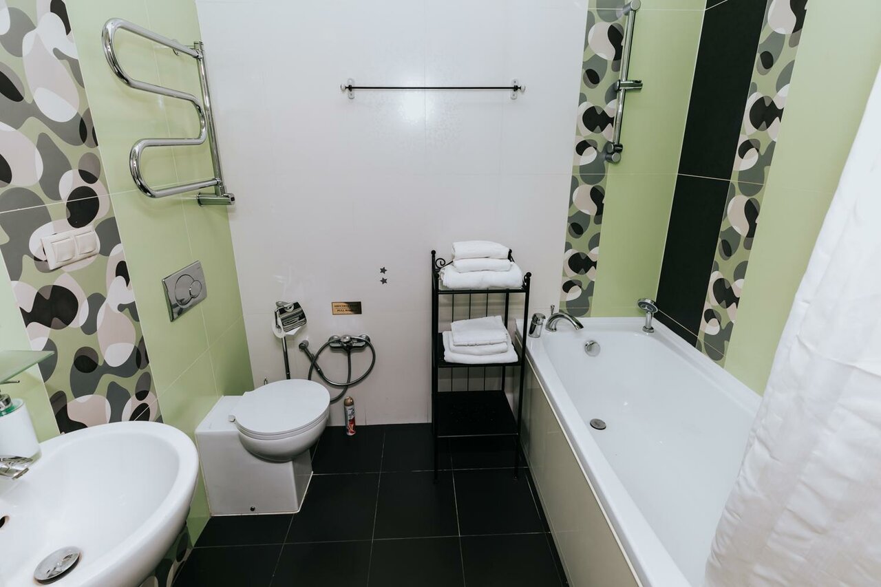 Добрый день. Иногда можно с любимым человеком провести приятно время на высоте птичьего полёта. Нам обоим нравится эти апартаменты, хоть и живём совсем рядом. Уютно, комфортно. Особый шик ванна у окна с видом на город. Нам здесь комфортно