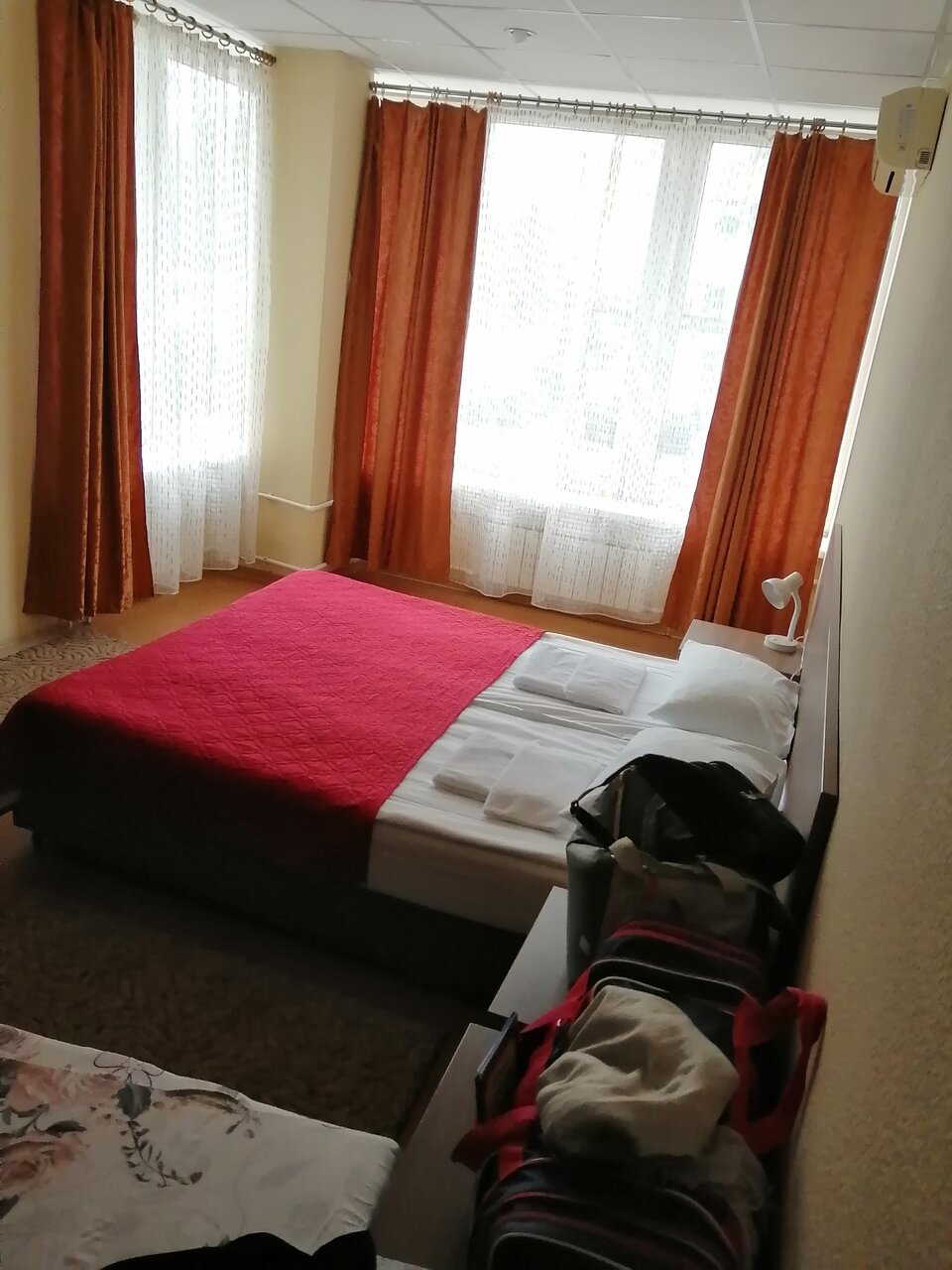 Честно, не знаю за что многие пишут положительные отзывы. Остановились на ночь,хотели после дороги сходить в душ, не осмелились. Вся мебель уже давно просит замены, а про местоположение я вообще молчу.Вместо будильника проснулись от стуков строителей и дрели,не самое приятное пробуждение,особенно, когда хочешь выспаться.Утром был шведский стол, не из самых свежих продуктов. Свежими были толька каша,одна.За трёх местный номер с завтраком отдали 5010, для Москвы это нормально, но точно не за это. Из плюсов метро рядом, телевизор и кондиционер, больше даже выделить нечего.