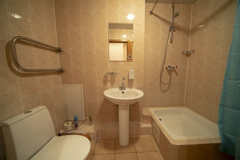 1. В душевой занавески короткие, из-за чего вода попадает за её пределы на пол. 2. Не работает одна из двух ламп. 3. Не работает кондиционер.