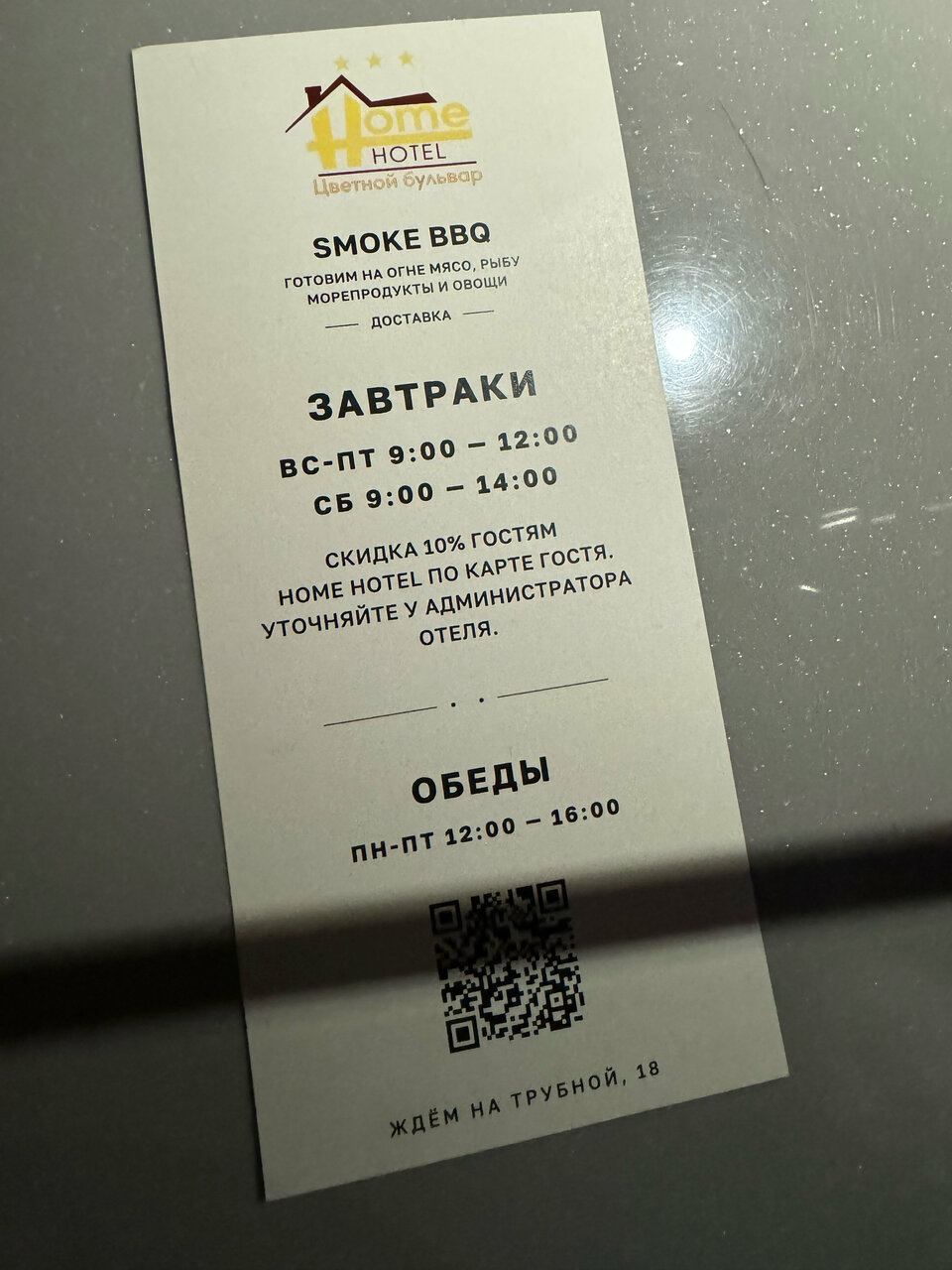 Останавливались в отеле с 4 по 11 октября. Самое большое преимущество отеля — расположение в центре. Полчаса прогулочным шагом до Красной Площади, 5 минут до Бульварного кольца. В пределах 10 минут ходьбы 3 станции метро разных веток. Рядом с отелем есть магазины и кафе. Новый отель, всё чисто. Есть лифт. Номер небольшой, но очень удобный. В номере есть телевизор, кондиционер, чайная станция, фен, сейф. Белоснежная постель и полотенца, очень удобная кровать. За неделю несколько раз вынесли мусор и поменяли полотенца. Хорошая звукоизоляция: не слышно ни соседей, ни звуки в коридоре. Лично мне не хватило крючков для верхней одежды, полочки в душевой кабинке. Ну и хорошо бы, чтобы был маленький холодильник. Но по сравнению с преимуществами отеля — это мелочи, на которые можно закрыть глаза.