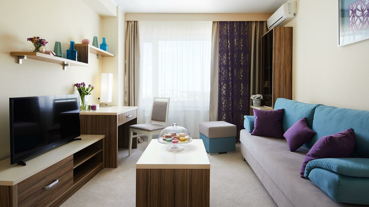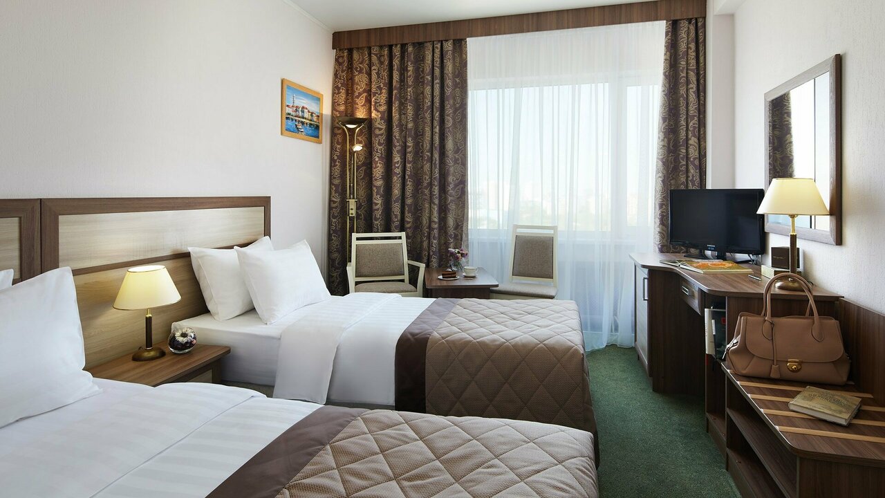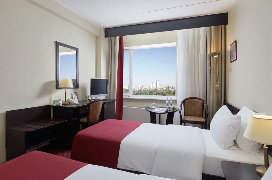 Удобства: ✔ Кондиционер, Wi-Fi, телевизор, холодильник, фен, санузел ✔ Парковка, тренажёрный зал, крытый бассейн, сауна, баня, спа ✔ Ресторан, кафе, бар, доставка еды в номер ✔ Бизнес-центр, конференц-зал, банкомат, обмен валюты ✔ Детские кроватки (бесплатно для детей до 3 лет), игровая зона ✔ Прачечная, химчистка, камера хранения, аптека