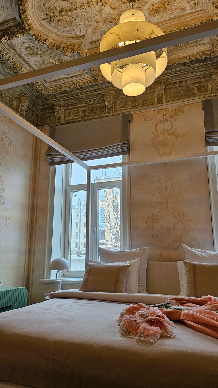 Шикарный отель, отдыхали на 8 марта , в подарок у нас было игристое в честь моего дня рождения . Сделали шикарную фотосессию . Интерьер и лепнина на потолках безумно красивая , наш номер тихий и спокойный . Так же провели прекрасно время в баре , бармен очень приятный и делает красивые и вкусные коктейли . Администраторы такие добродушные и вежливые всё рассказали подробно показали , всегда в хорошем настроении. Спасибо большое за прекрасный отдых .