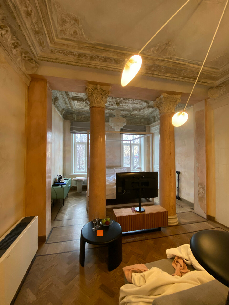 Зашел попить кофе. Бармен и администратор рассказали историю отеля. Очень приятные люди. Про интерьер вообще молчу. Не знаю, как смогли сохранить такую красоту и сделать еще лучше.