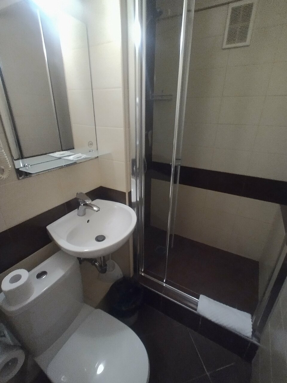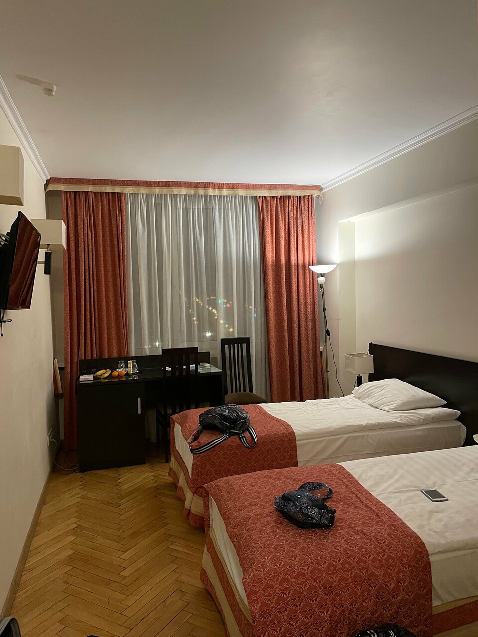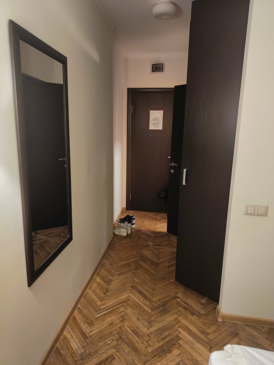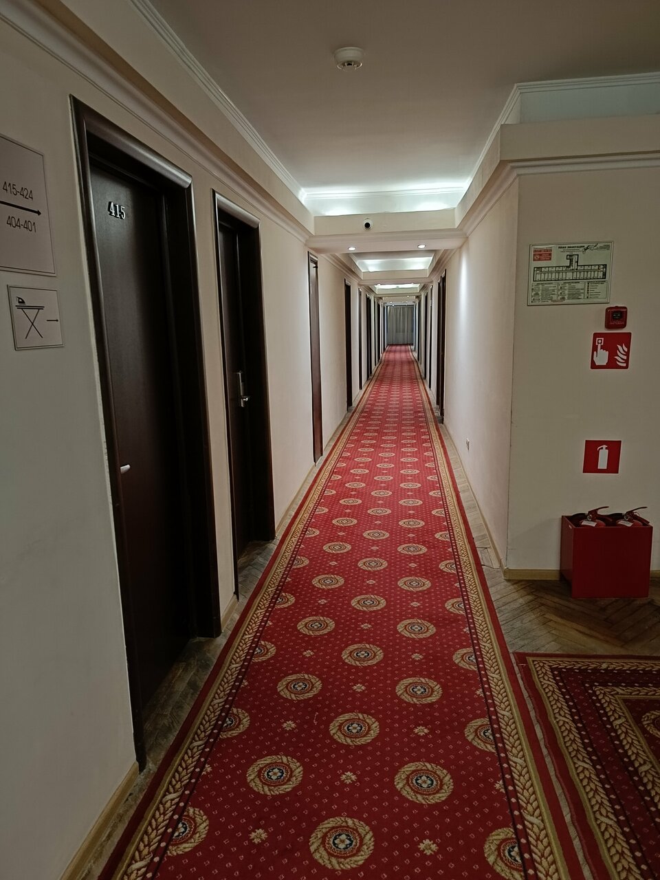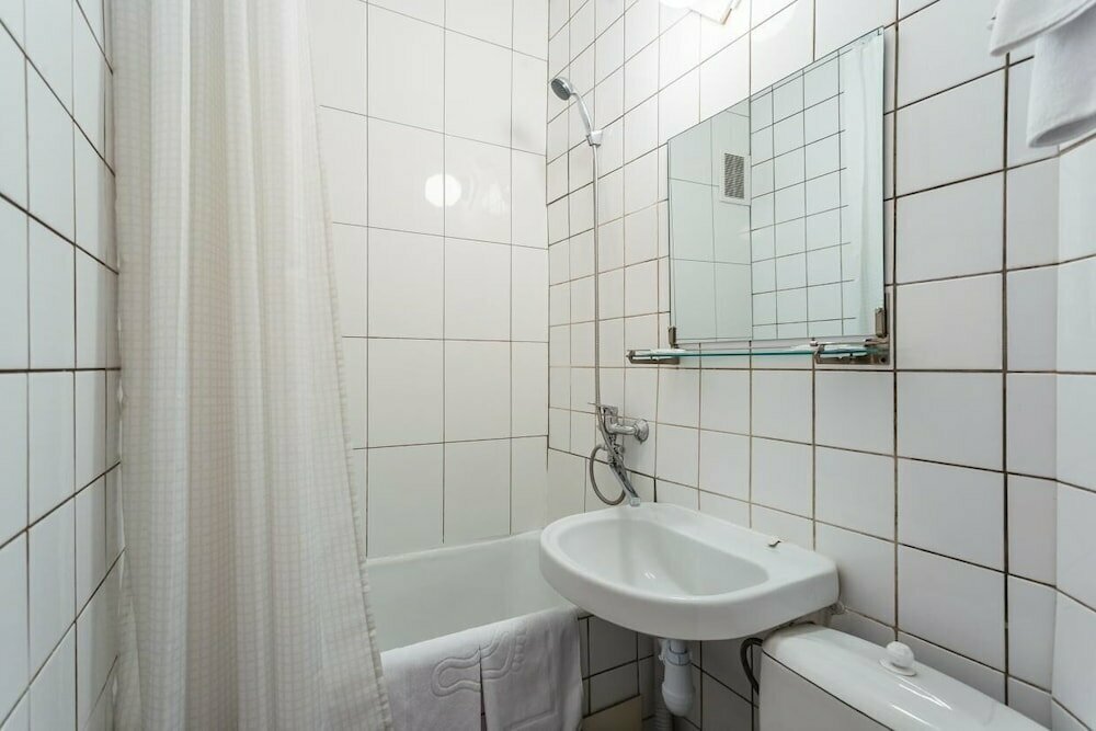 Общее впечатление о гостинице хорошее. Жили на 5 этаже, в двухместном номере, эконом с завтраками. Завтраки хорошие (оплачиваются отдельно), это лучше чем бежать куда-то и кушать( ежедневно одно и тоже, стандартный набор), но для нас было удобно, покушали и побежали по своим делам. Из плюсов: отличное расположение, хороший вид из окна, не шумно, отличная кровать (лег и сразу уснул), чисто. Из минусов: ВАННА!!! Это ужас! На нее смотреть страшно, не то что мыться! Пол в номере-деревянный уже прям проситься чтобы его заменили! Из-за него создается впечатление грязи в номере! Отсутствуют тапочки(по такому полу хочется ходить только в них), чайник (но в холле имеется кулер с горячей и холодной водой), посуда (даже стандартного набора нет), фен! И да, в номере прохладно, дует с окна видимо. Снимаю одну звезду за ванну!