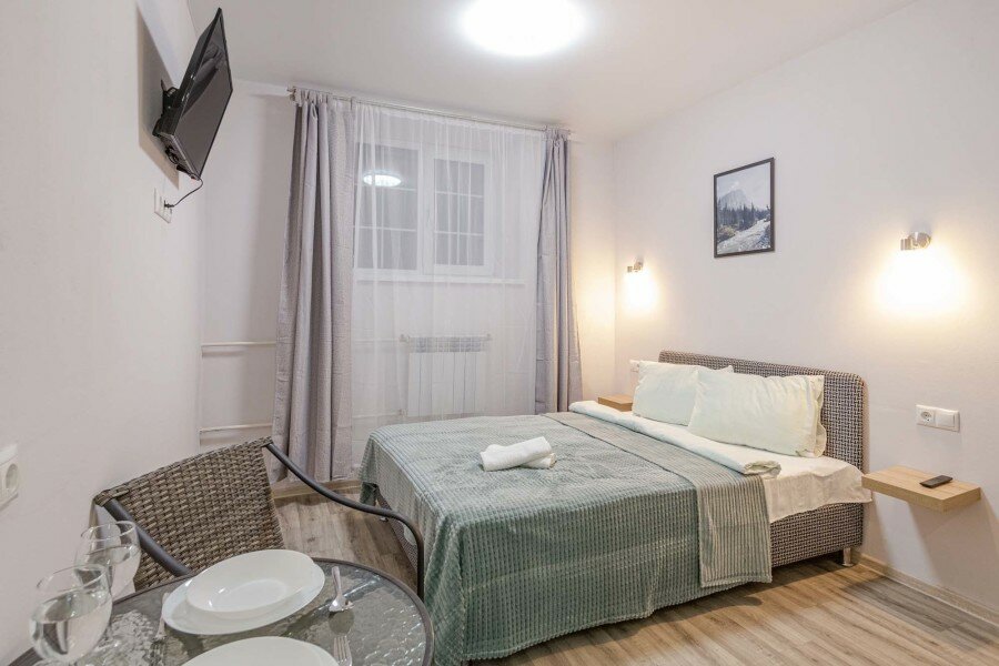 Останавливалась на пару суток здесь с мужем. Хороший ремонт, в номере есть своя кухня, санузел, интернет, телевизор, посуда, холодильник, микроволновка, чайник, в общем все для комфорта гостей. Постельное белье и полотенца белоснежные, было очень приятно. Чувствовали себя как дома, дискомфорта не испытывали.