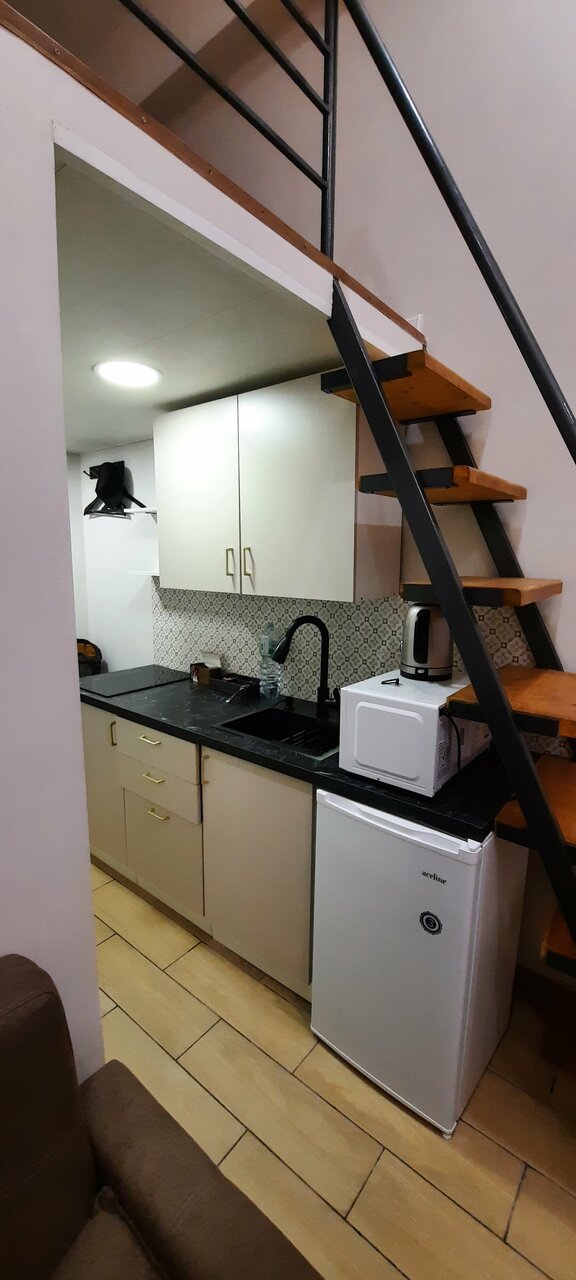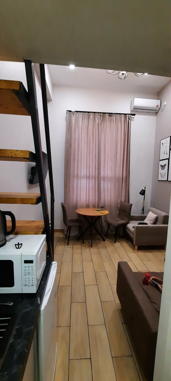 Очень понравился отель! Транспортная доступность — приезжающим в столицу на авто просто доехать, бесплатный паркинг во дворе (не ставьте прямо у входа, жильцы дома обьяснимо нервничают) Заселение без общения с персоналом! Получаешь код от входной двери и номера, и селишься Апартамент чистый, фишка в антресольной спальне Все удобства, своя кухня, кондиционер Цена при семейном проживании более, чем демократична. Однозначно рекомендую!