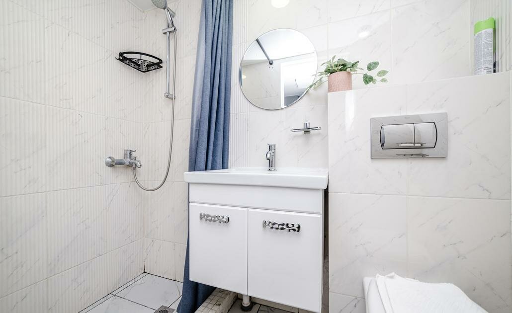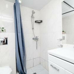 - Просторная душевая зона.