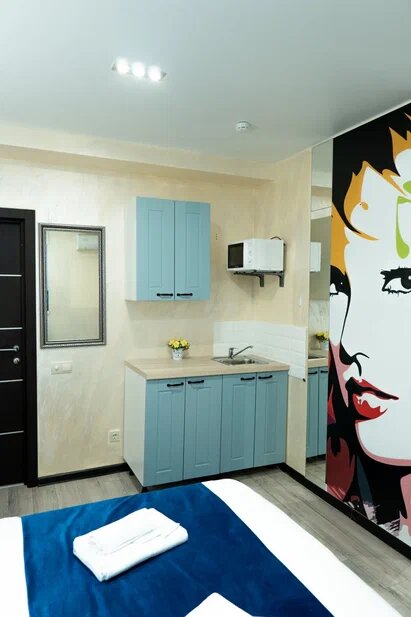 Апартаменты с кухней, ванной и с/у в номере. Стоимость проживания для одного гостя 3800₽, для двоих гостей 4300₽.