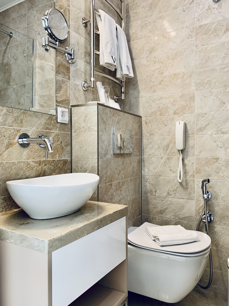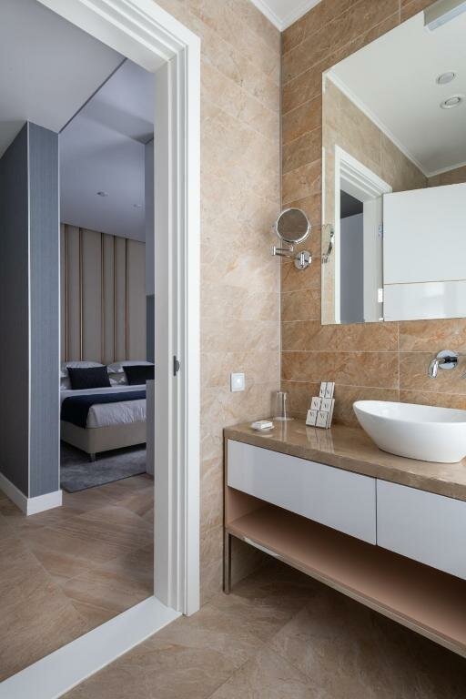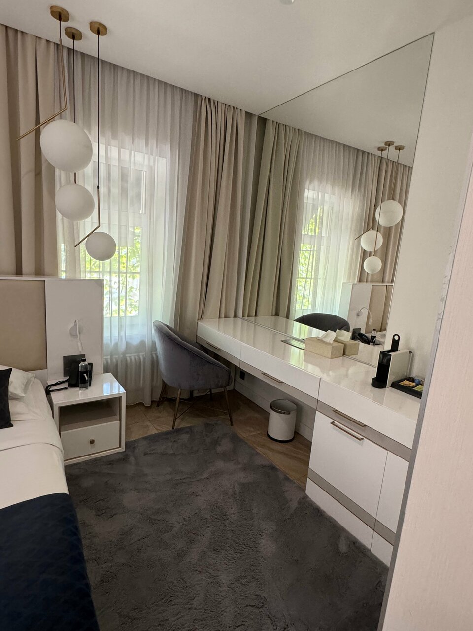 Прекрасный и комфортный улучшенный номер. В номере есть халаты, косметический набор и кофемашина. В стоимость входит парковочное место, прачечная и завтрак.