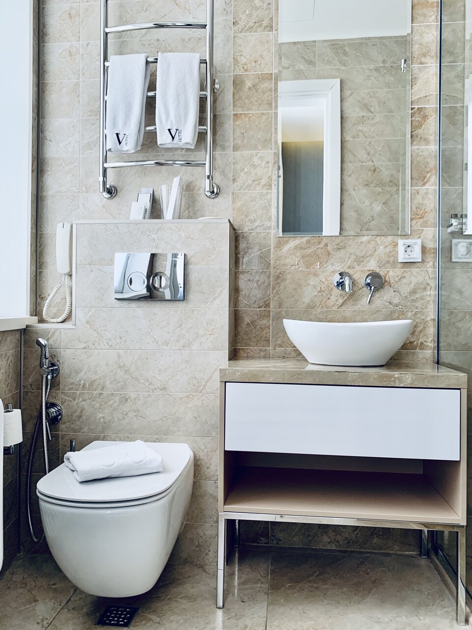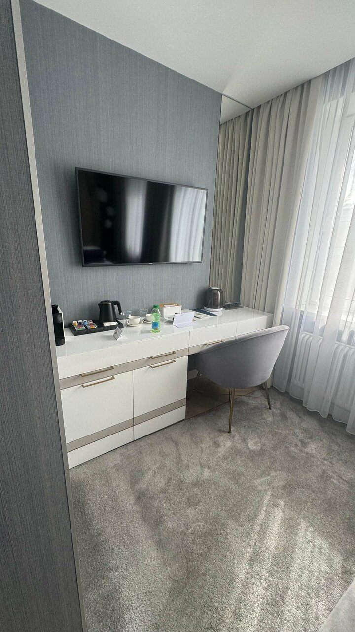Отличный, стильный отель! Проводила там утро и сборы невесты (Junior Suit), у номера рядом прекрасное мансардное окно и балкончик! Для фотосессии огонь очень красиво оформлены номера! Также для утренних сборов и работы визажиста очень классно оборудован туалетный столик (целая столешница) и зеркало- мастеру и мне было очень удобно). Персонал вежлив, помогли на всех этапах, был комплемент от отеля в честь торжества. Порадовали бесплатные услуги прачечной, смогли отпарить фату, костюм и прочее. Очень вкусные завтраки! Отель находится в 5 минутах от Тверской/Пушкинской, рядом круглосуточный магазин и ВкусВилл. В отеле есть лифт. Чисто в номере, ванная комната отлично оборудована, есть абсолютно все в номере — все туалетные пренадлежности: набор для чистки зубов, бритвенный набор, шейный набор, беруши, гели, крема, кондиционеры и тд. Рекомендую в целом и для утренних сборов невесты особенно