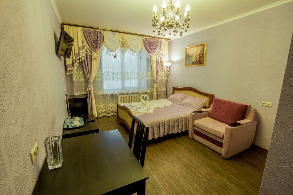 Практичный номер Стандарт с 2-местным размещением, новой мебелью и индивидуальным санузлом.