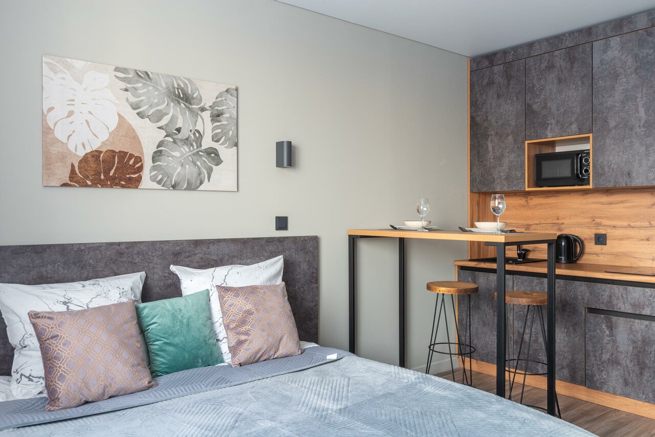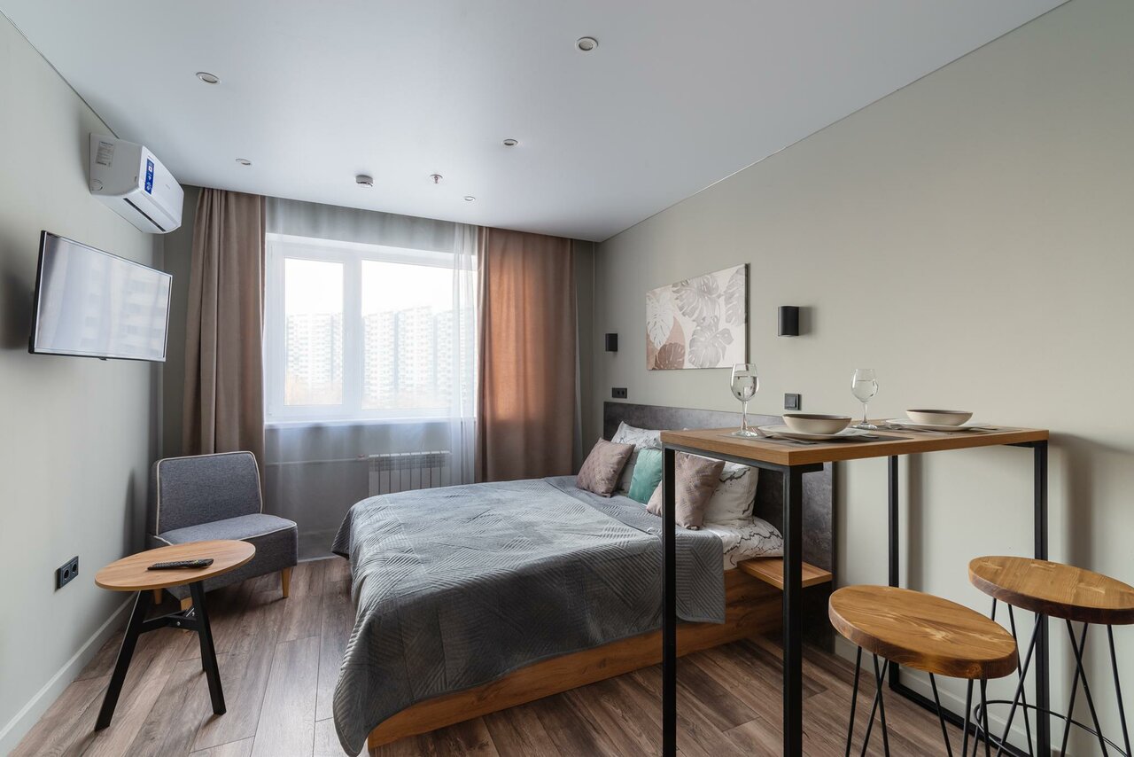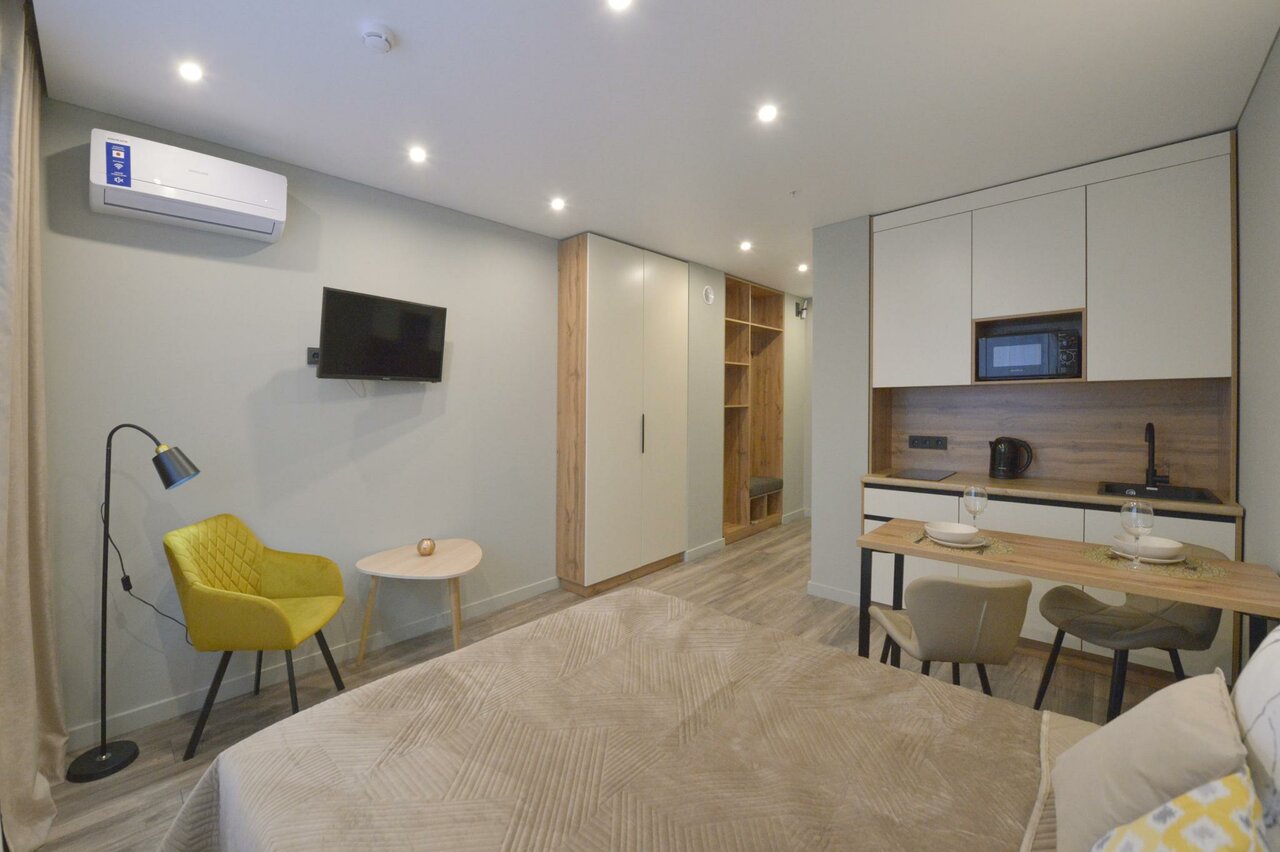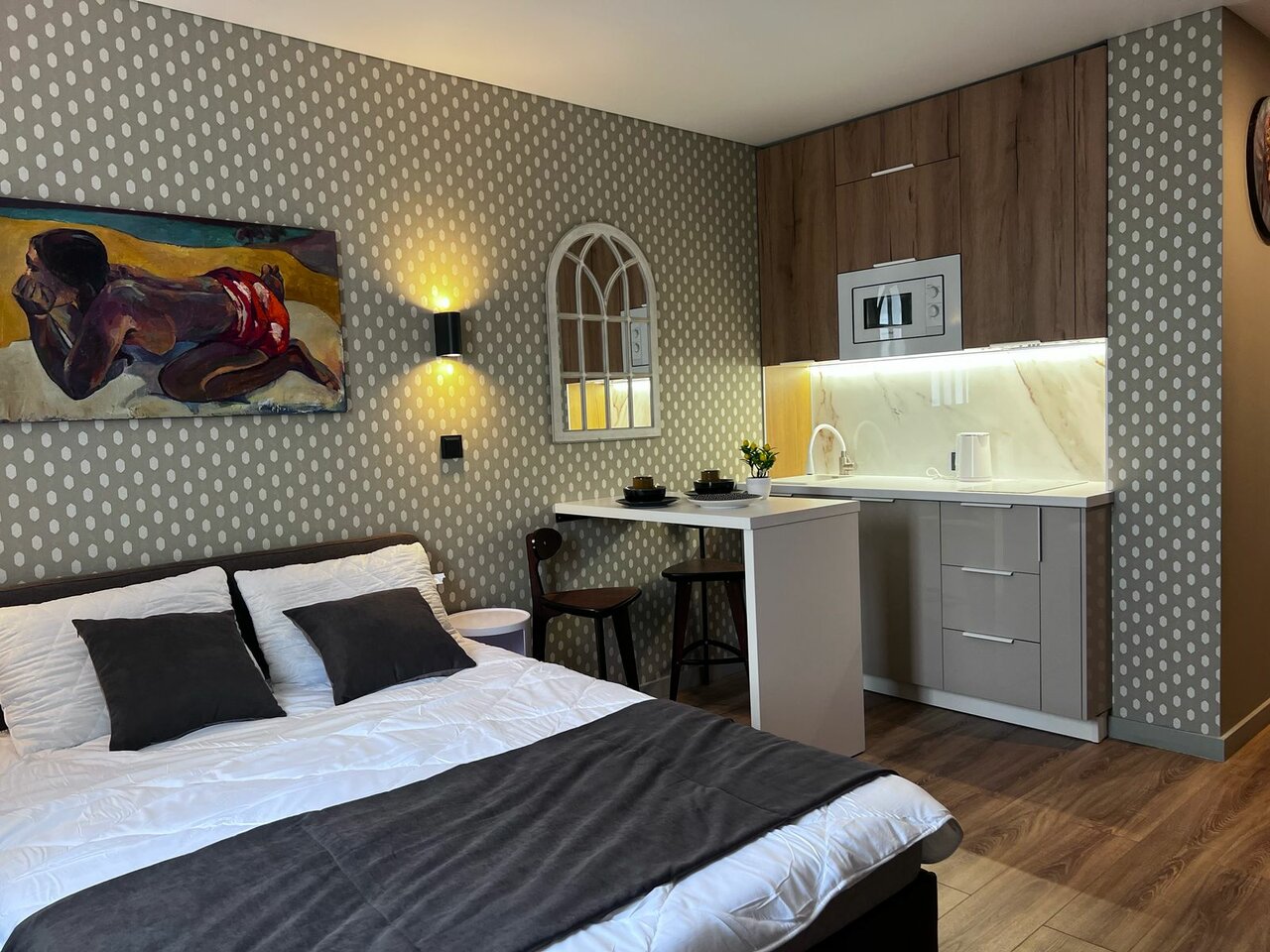 Номера категории Студия – это современные, комфортные номера, площадью 17 кв.м. с лаконичным дизайном. Лучший вариант для Гостей, которым важно соотношение цены и качества.