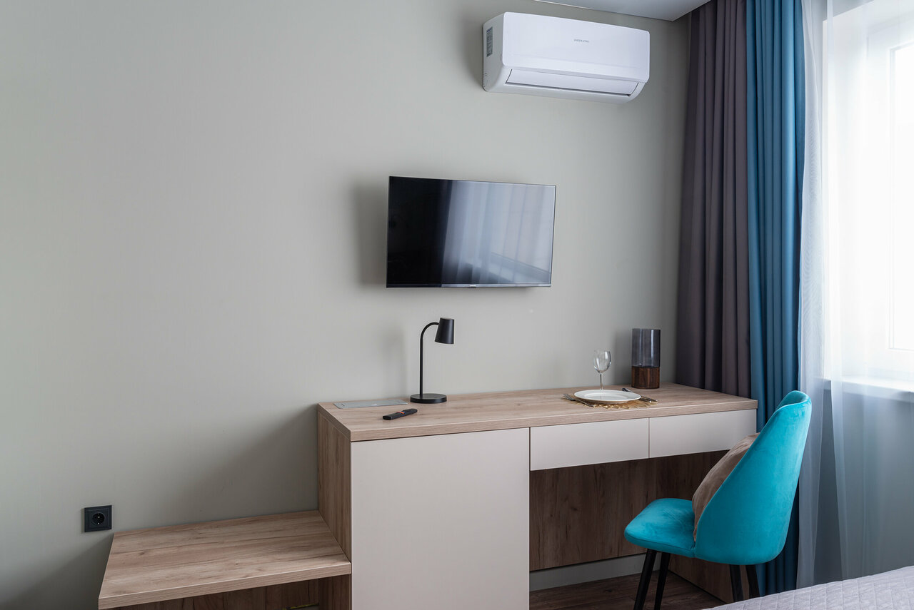 Хороший отель, брал номер делюкс на ночь. Работники приятные и вежливые. В комнатах чисто, тихо и красиво. Мебель качественная и удобная. Телевизор хороший, посмотрел перед сном. Был кондиционер, но им не пользовался. Отель очень понравился, рекомендую к посещению.