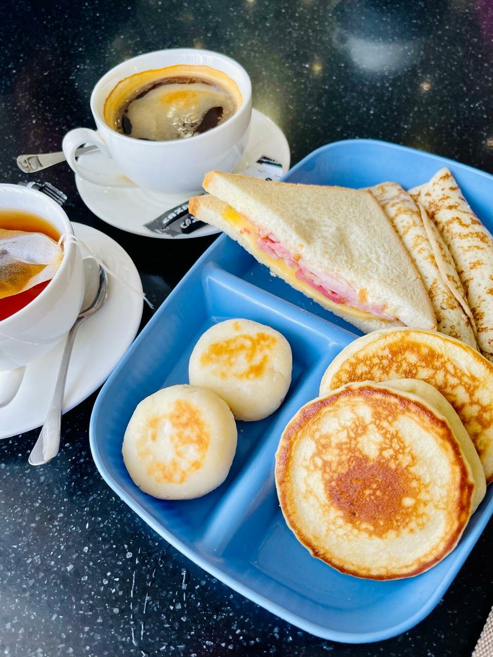 Континентальный завтрак Завтрак подают порционно:- сырники,-сэндвич,-блины с мясом и творогом,- чай или кофе.