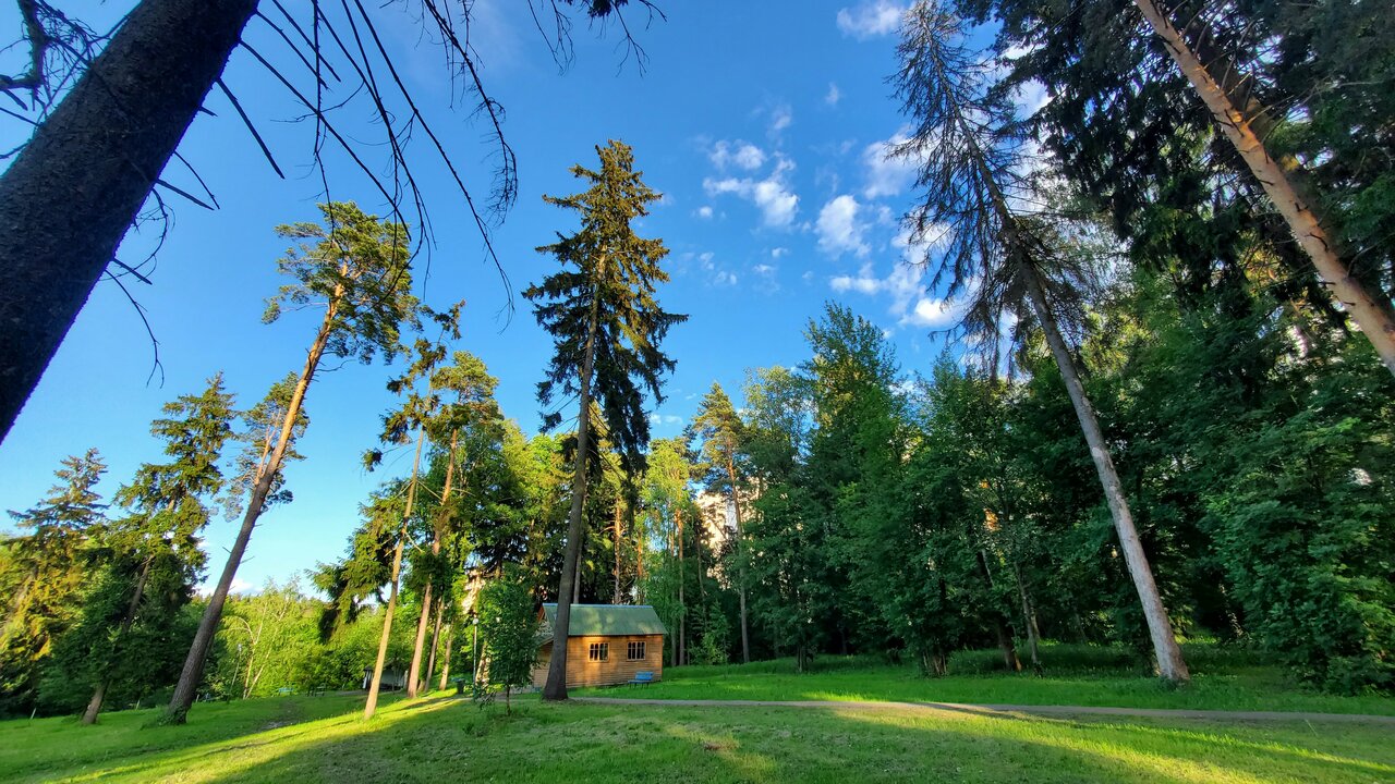 На входе написано, что гостиница однозвездочная. На самом деле вполне себе нормальные 3 звёзды: номера большие, часть уже отремонтирована, часть back in USSR. В номерах душ-туалет, холодильники, микровельки, кондиционеры, огромные балконы. В больших номерах есть своя кухня. В гостинице пока нет кафе, но обещают. Территория — просто шикарная, большая, тихая, с прудом, соснами и мангальными площадками. Есть сауна. Персонал замечательный. Далековато до Москвы, но такси до метро едет быстро и круглосуточно…