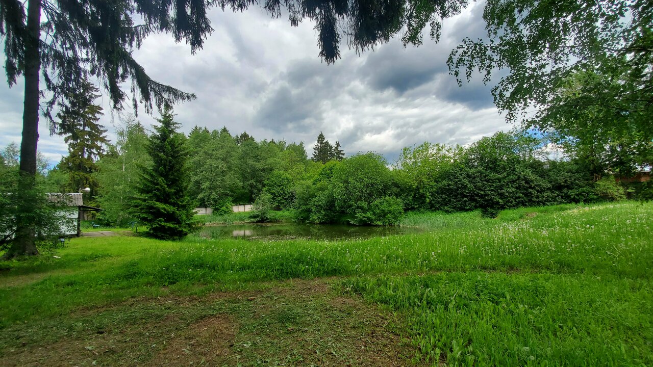 - Большая и красивая территория (сосны, пруд, беседки).