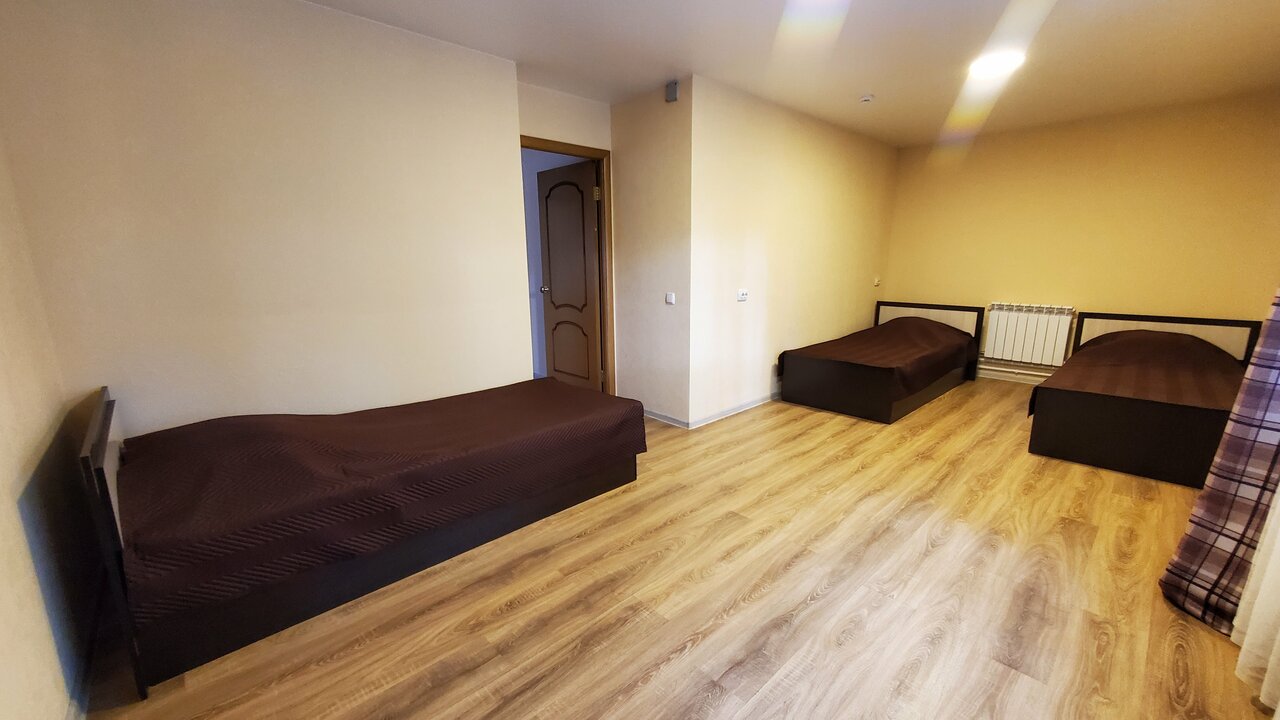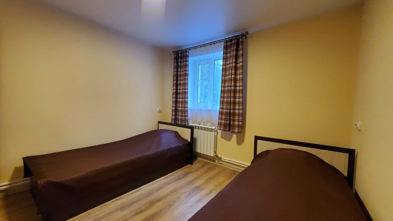 Хорошее расположение, большая территория, есть беседки ,зона мангала, небольшой пруд, баня. Снимали двух этажный номер. Номер просторный небольшая кухня, на втором зтаже две спальни, балкон . С комнаты на первом этаже свой выход на улицу. Парковка на территории. Чистое пастельное белье. Ну наверное всё из плюсов. Теперь про минусы: номер грязный пыль по всюду, полы грязные такое ощущение что их никогда не мыли , носки пришлось всем выбросить. Я прекрасно понимаю, что ремонта давно не было мебель старенькая, но элементарно помыть унитаз и полы наверное можно