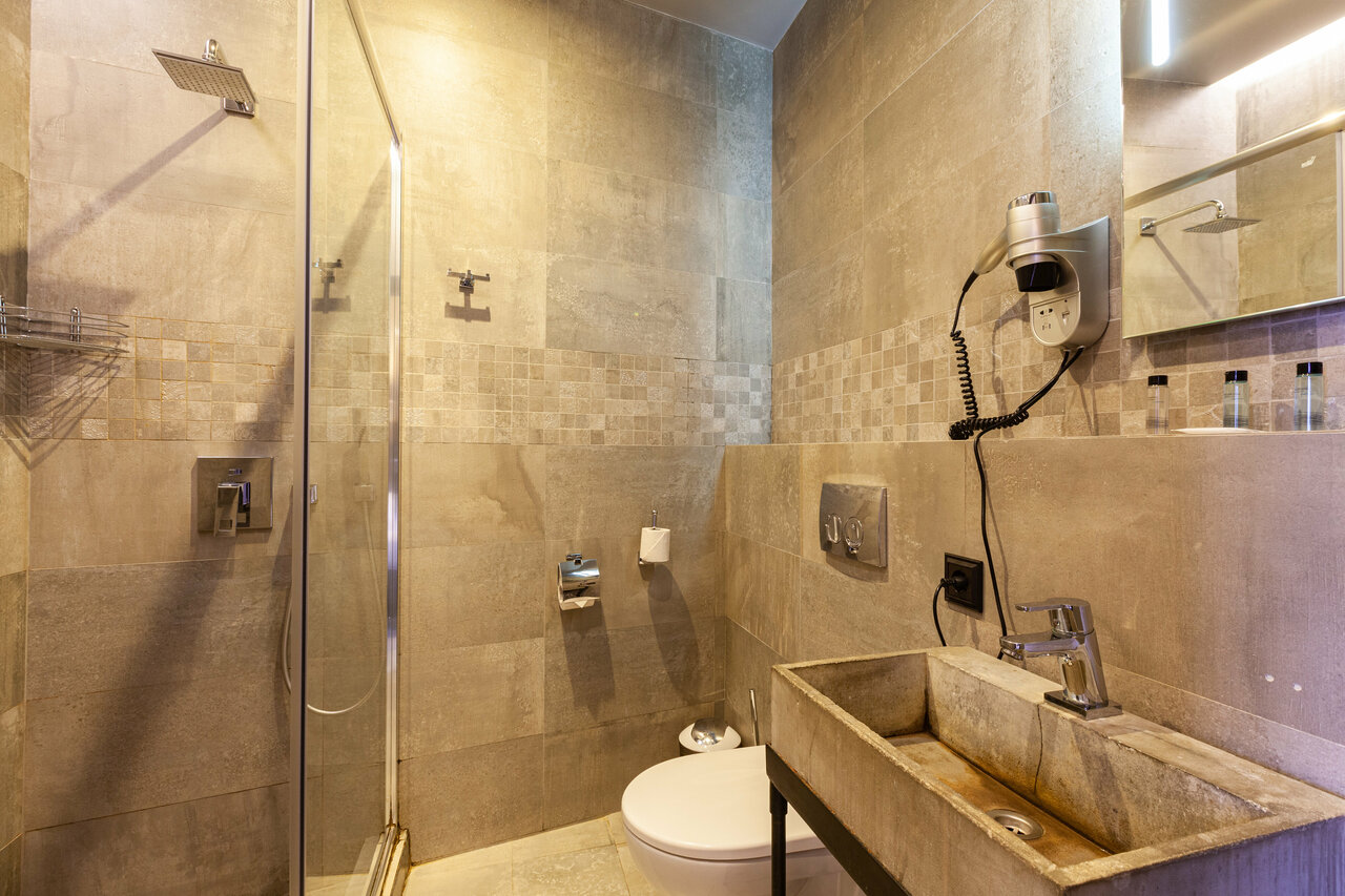 Хороший отель в старинном здании. Есть своя небольшая парковка на три автомобиля, это тоже плюс. Брали Junior Suite с джакузи. На сайте указано, что номер максимально вмещает 4 человека, но это преувеличение. Номер неплохой. Есть все необходимое, чайник, капсульная кофемашина, сейф, холодильник. Ванна новая, все работает. В номере кондиционер, можно включить на обогрев. Порадовало, что в коридоре и в номере новый, чистый ковролин. Из недостатков могу отметить халаты, они присутствуют, но сели так сильно, что выглядят смешно. Персонал на ресепшн, тут как повезёт. По телефону девушка очень вежливо и позитивно общалась. При заезде молодой человек в распахнутой рубахе не сильно был заинтересован. При выезде другой молодой человек очень вежливый и тактичный. В целом все понравилось. Спасибо!