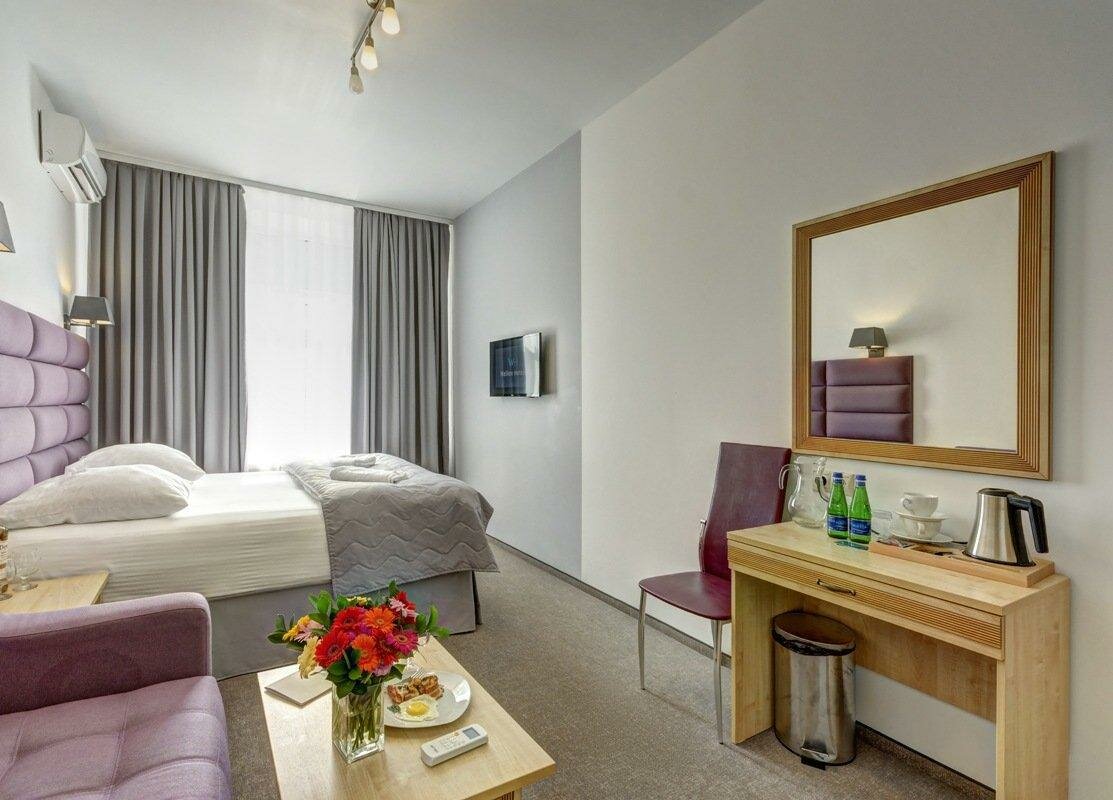 Контакты: +7 (495) 152-33-33, +7 (925) 034-77-27 https://wellion-hotels.ru/hotel/vodniy/ Заезд: 14:00, выезд: 12:00.