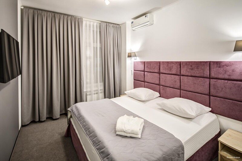 Номер уютный, есть возможность выйти и покурить, ванная чистая и красивая. В нем были полотенца. Администратор вежливый. Отель выбрали случайно, посетили его первый раз.