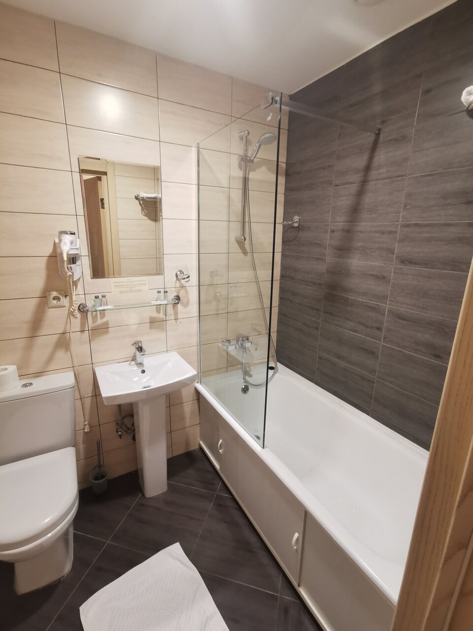 В номере тепло, постельное белье чистое. Есть телевизор, холодильник, чай можно заваривать кипятком из кулера. Ремонт приличный. Жили в стандарте, очень уютно. Понравились завтраки: вкусная каша, нарезка колбас и сыра, булочки. Заказывали ужин — порции огромные. Блюда вкусно приготовлены.