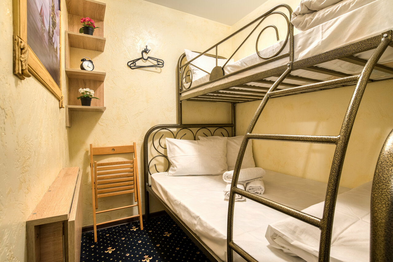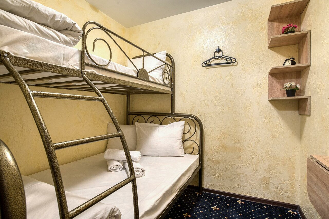 Отдыхали здесь с семьёй в июле, были недолго, поэтому нам было удобно всё: двухэтажная кровать, наличие кухни и утвари на ней, утюг с доской, и санузлы, всё в нескольких экземплярах на том же этаже. Особенно отмечу, что всегда и везде было чисто-за это отдельное спасибо тех персоналу. Сама гостиница находится в 5 минутах от Арбата и многих кафе, до метро минут 7-10 пешком.