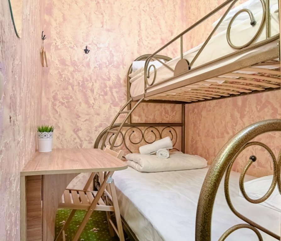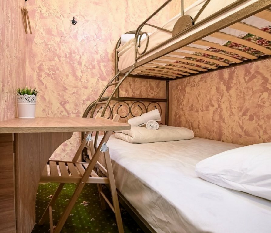 нет полотенец, очень неудобные ступеньки на кровать 2го этажа и номерок почему-то расположен с внутренней стороны двери. Для того, чтоб я не забыл в каком номере живу, находясь в нём? не очень логично, мне кажется. поблизости нет магазинов кроме одного Вкусвилла. но очень близко от метро, тихий двор, вежливый персонал