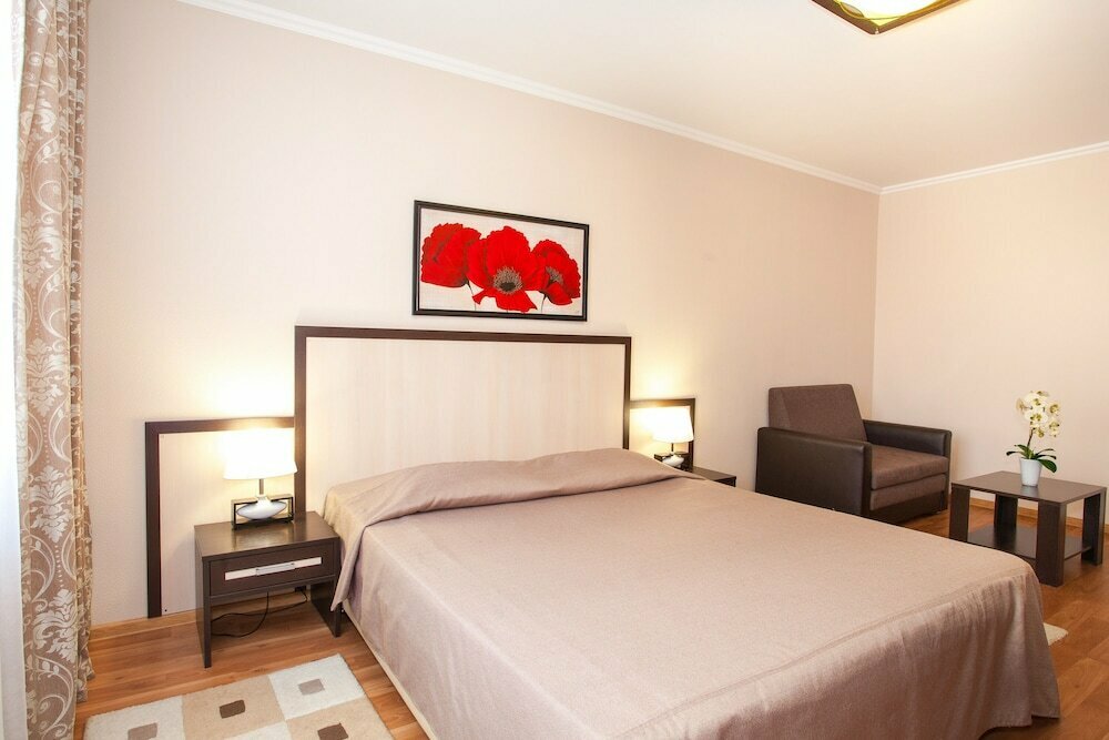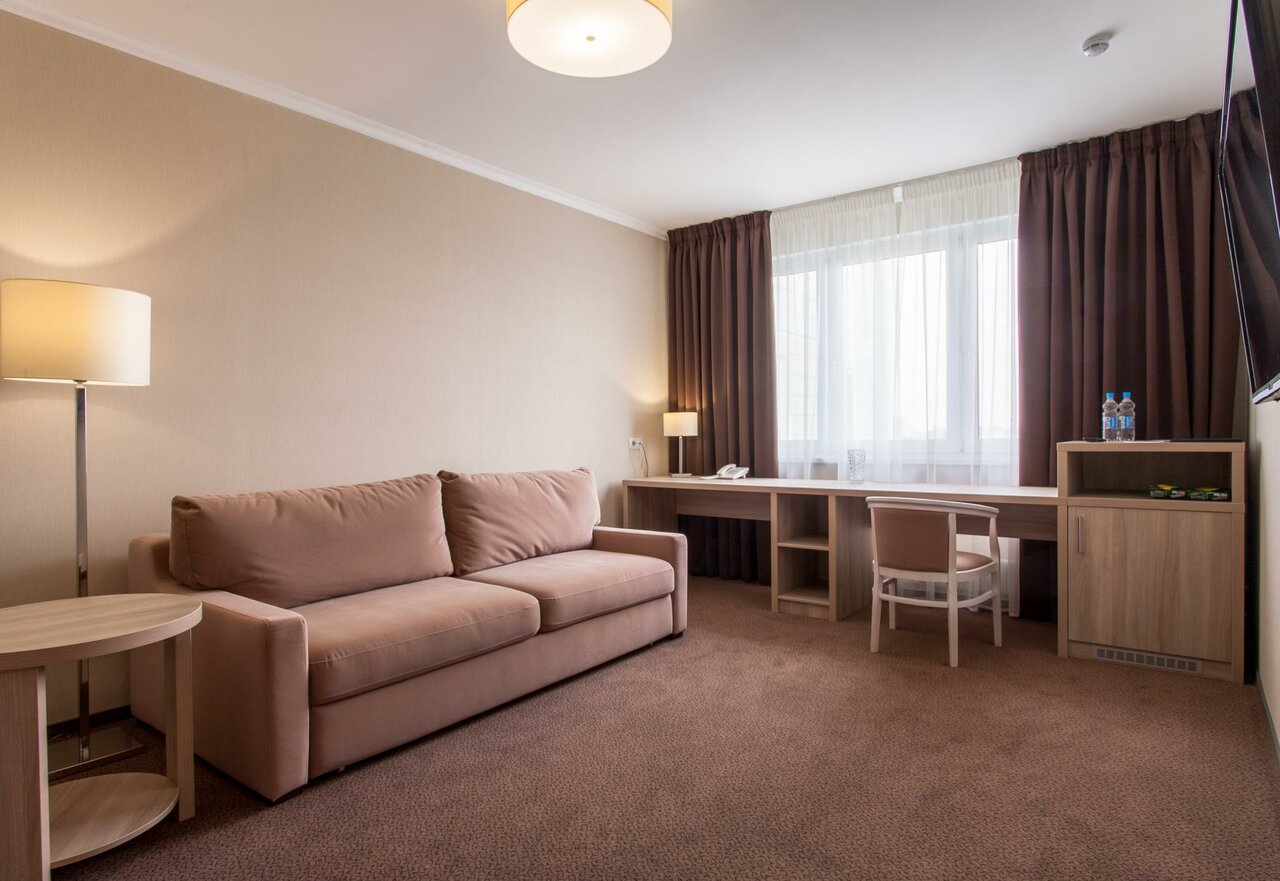 Площадь: 38 м2 или 54 м2. Комфортабельные однокомнатные или двухкомнатные номера с современным дизайном.