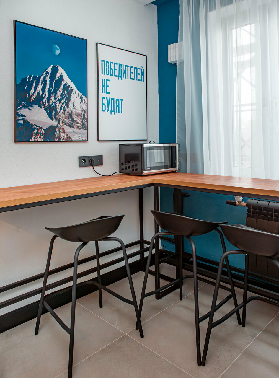 Капсульный номер представляет собой блок из двух раздельных комнат, в каждой по 6 капсульных мест.В таком номере имеется полностью укомплектованная кухня, душевая комната и санузел.