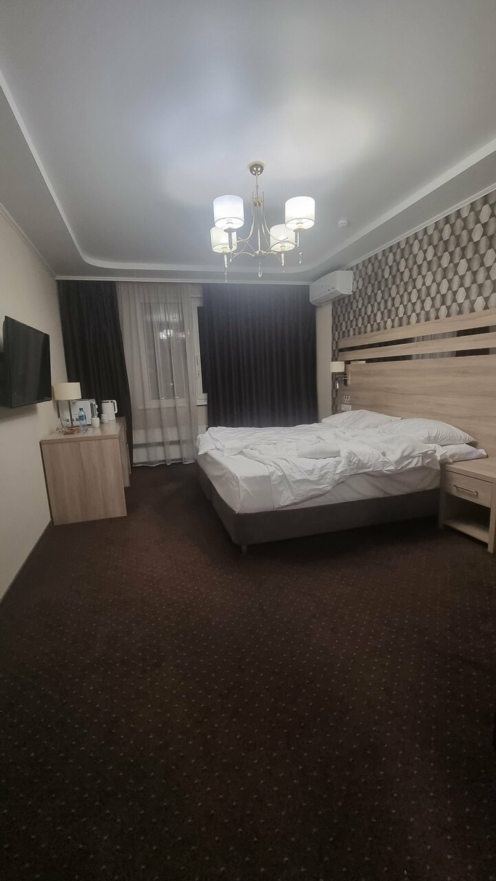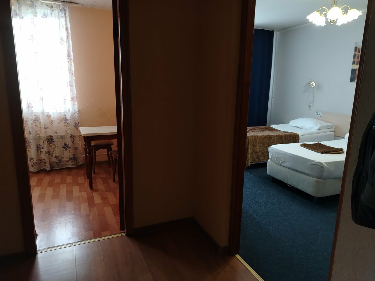 Снимали номер на сутки. В номере чисто. Номер больше похож на однокомнатную квартиру. В номере есть плита и посуда, есть возможность приготовить завтрак, ужин или можно заказать. Рядом продуктовые магазины.