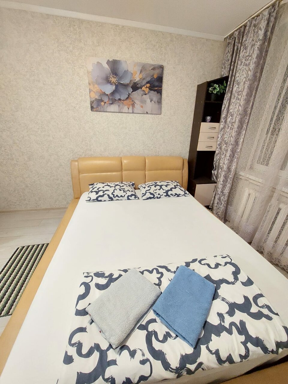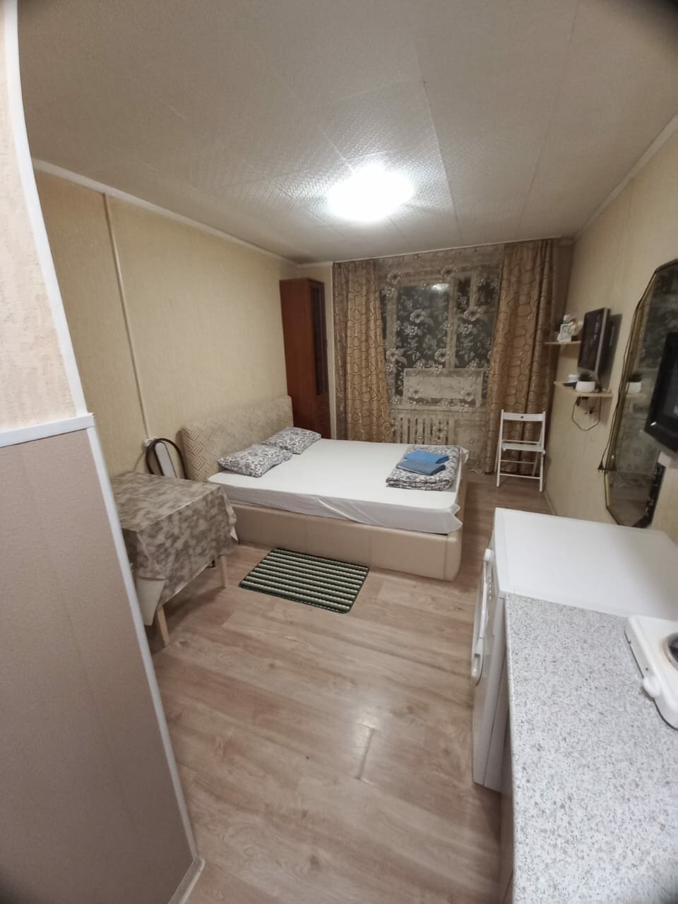 Постельное и полотенца всегда чистые. Заселение быстро дистанционно. Через дорогу тц калейдоскоп, магазины, кафе. Всё уютно комфортно, нам понравилось