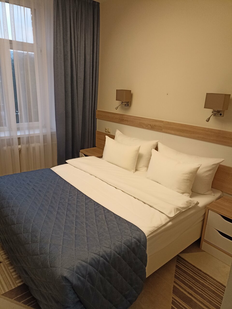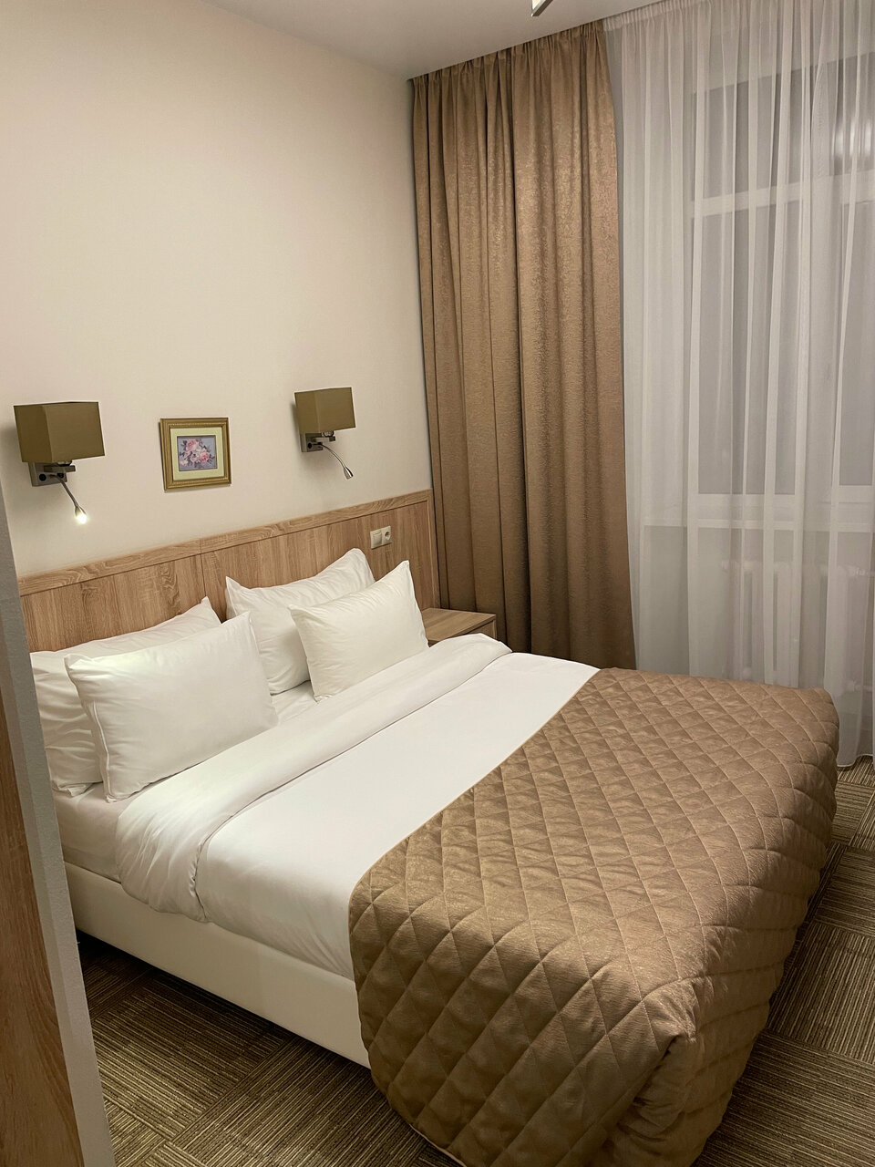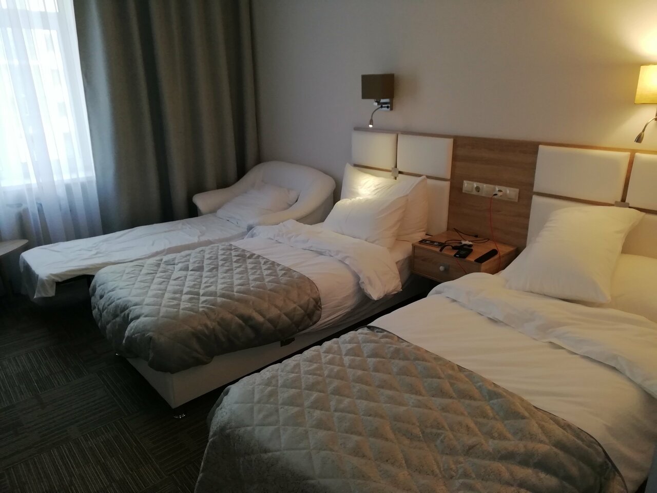 Гостиница соответствует заявленному уровню. Номера чистые, уютные. Имеют все необходимое для проживания. В гостинице довольно чисто. Обслуживание на уровне. Завтрак стандартный, правда блюда были чуть тёплыми. И немного напрягает очередь за едой.